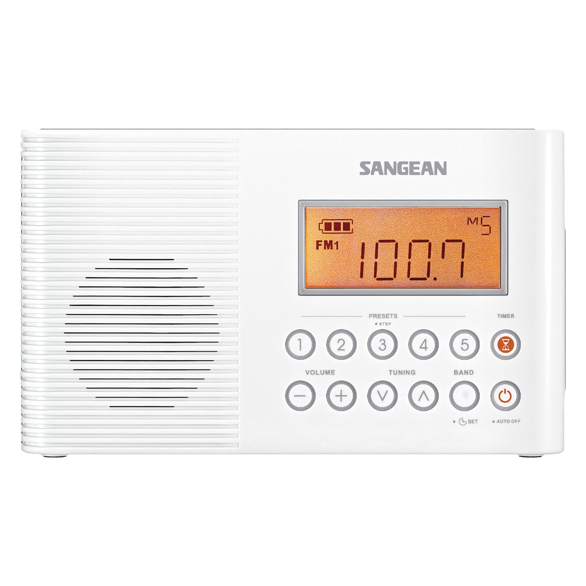 People often ask, “What makes Sangean better than the rest?” This radio is the answer. Stylish design, clean features, and station reception to rival any other. But we took it one step further by making it so water resistant it is almost submersible! Meeting waterproofing standards that are equal to marine radios. Look, listen, and try for yourself. Uses 2 ‘D’ batteries or an AC power adapter (neither included). Includes. Wall mounting bracket, shoulder style carrying strap, and double-sided adhesive squares by 3M.