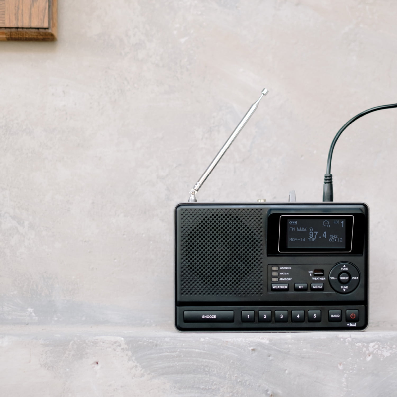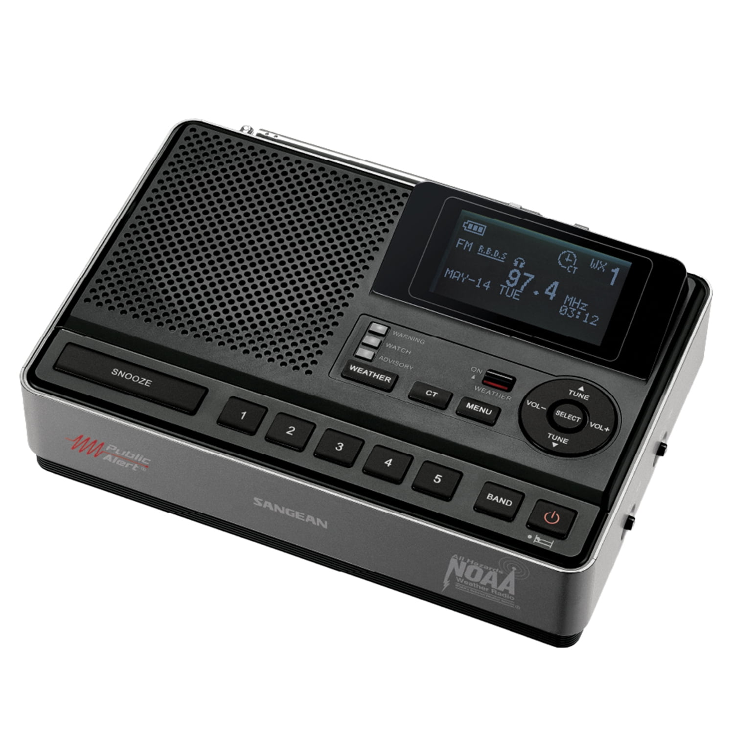 NOAA and Public Alert Certified Weather Radio Receives all 7 NOAA Weather Channel and Reports 3 Messages: Warning / Watch / Advisory Lights S.A.M.E. Broadcasts up to 25 Programmable FIPS Location Codes Stores up to 20 Alert Messages and Sets Sleep Timer 5 Memory Preset Stations for each FM / AM Band (5 FM, 5 AM) Dual Daily Alarms with Snooze and Waking to AM / FM Radio or Buzzer Alarm LCD Dimmer and Contrast Control Adjustment I/O Jack: DC Power In, Stereo Earphone, AM External Antenna, FM / Weather External Antenna, Aux-in, External Alert, Ground Terminal EEPROM Back-Up for Preset Stations Four AA Battery Operation and Battery Back-Up (ba the rise not included) Adapter Included (ADP-PRD18)