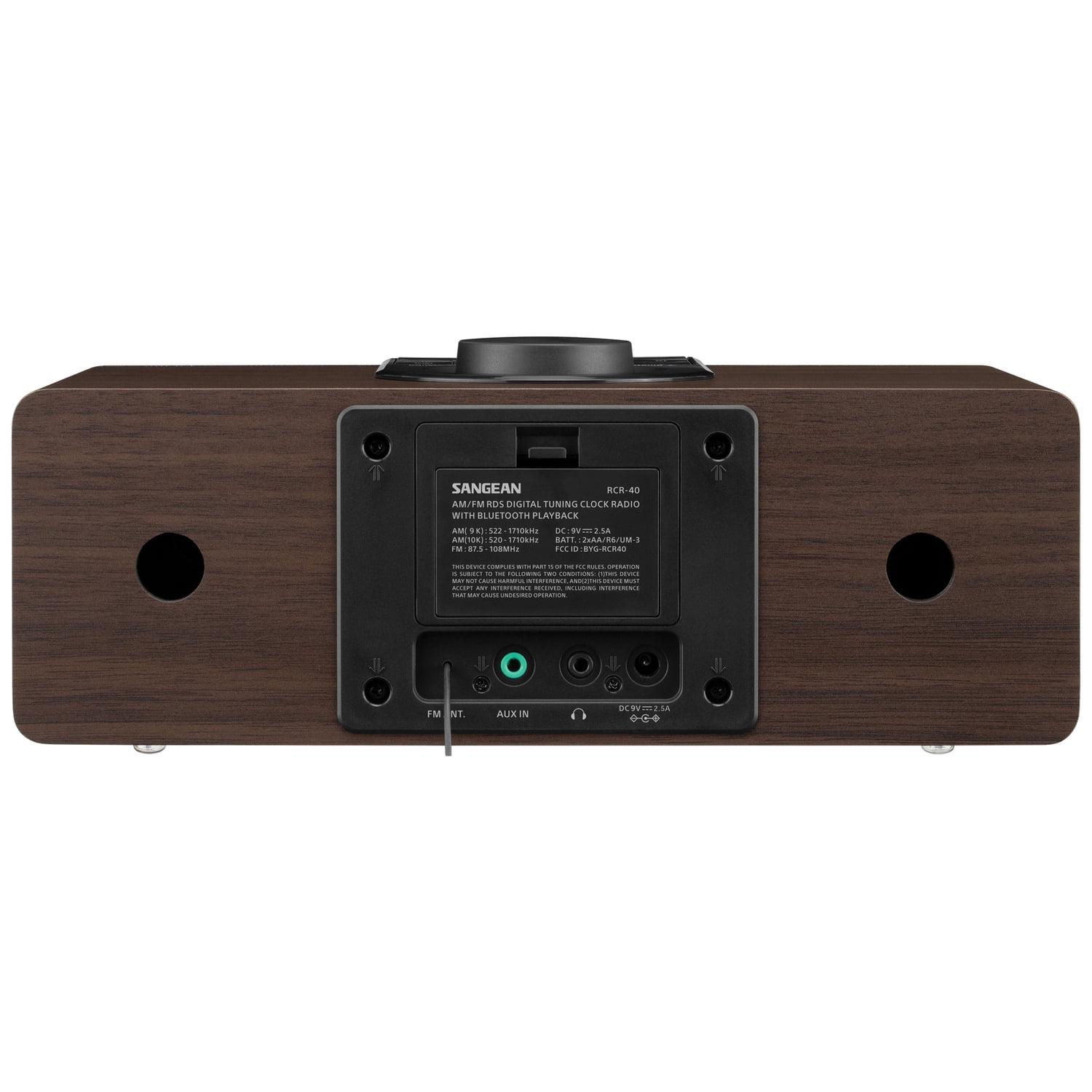 Sangean RCR-40 AM/FM Bluetooth Tabletop Wooden Clock Radio with Alarm and Sleep Timers