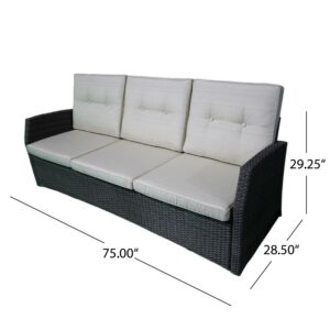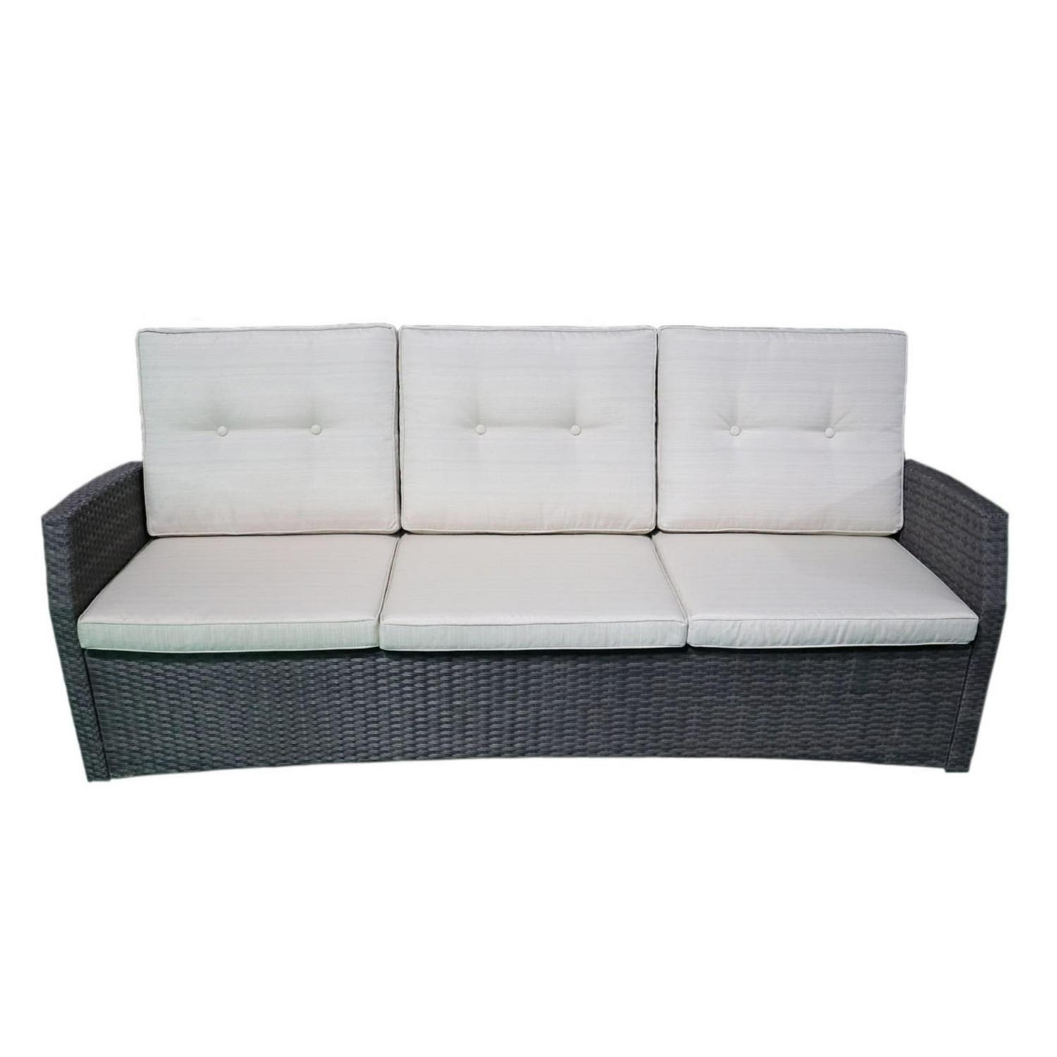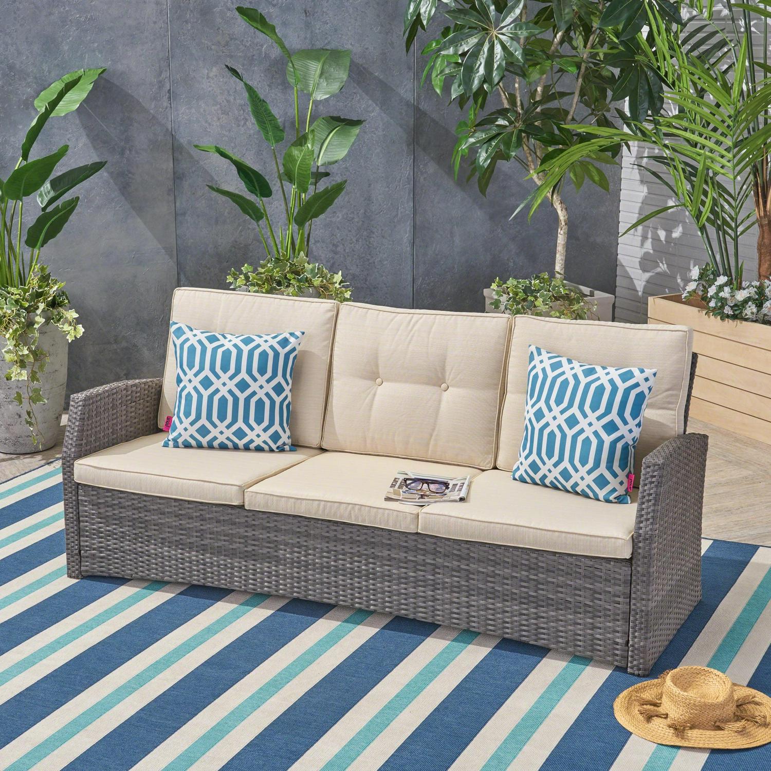 Sanger Outdoor Wicker 3 Seater Sofa with Cushion, Grey, Beige