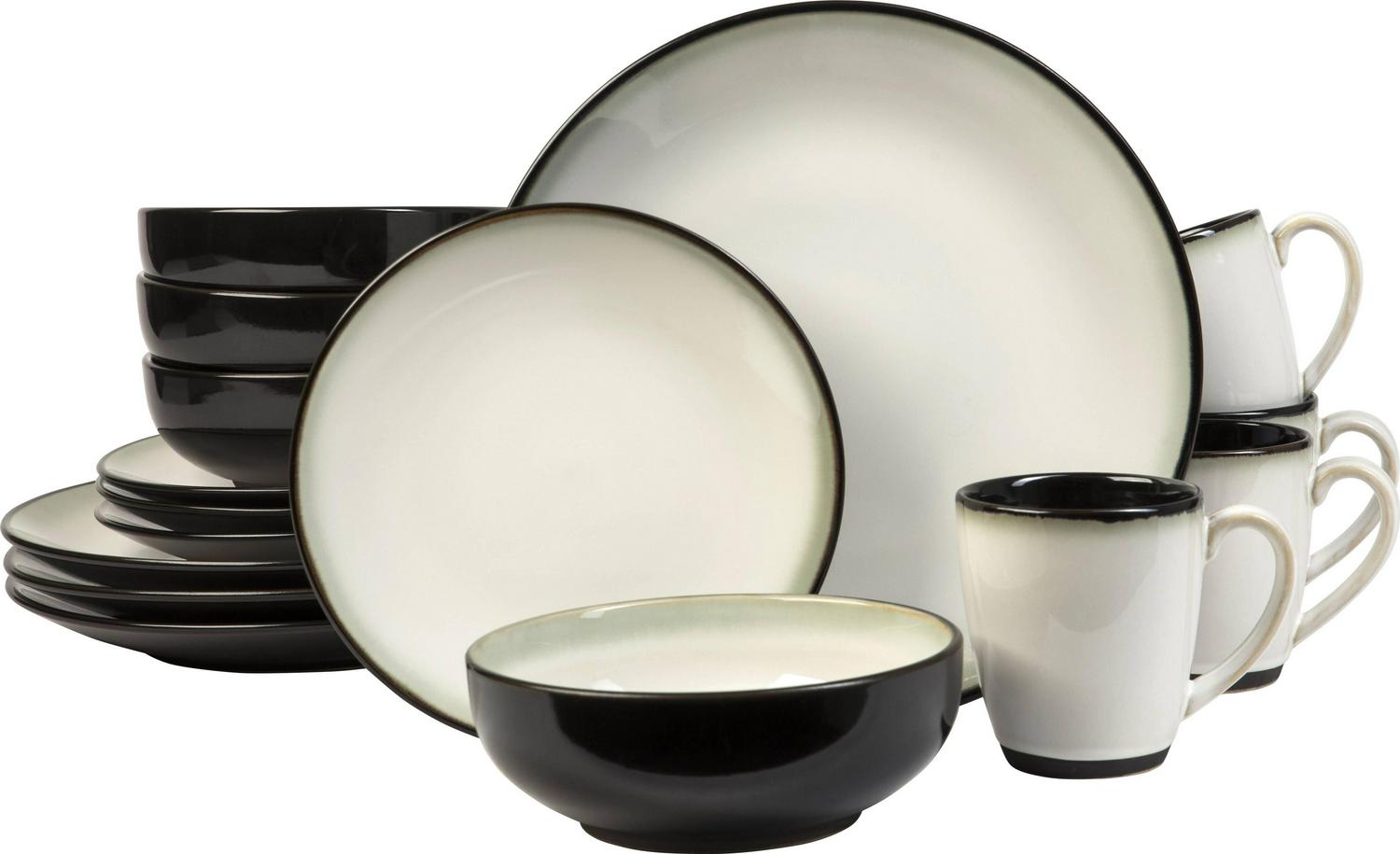 Sango Nova Stoneware Dinnerware Set, 16-piece, Black and White