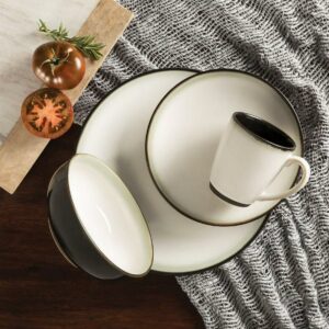 – Set includes four 11.2″ dinner plates, four 8.3″ salad plates, four 2.5″ (H) x 6.9″ (W) bowls, and four 12 oz mugs