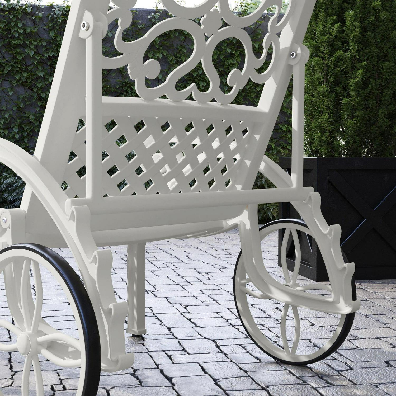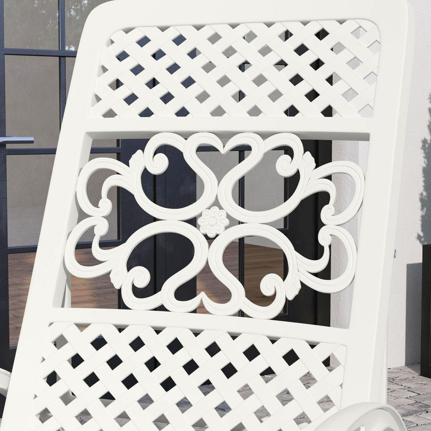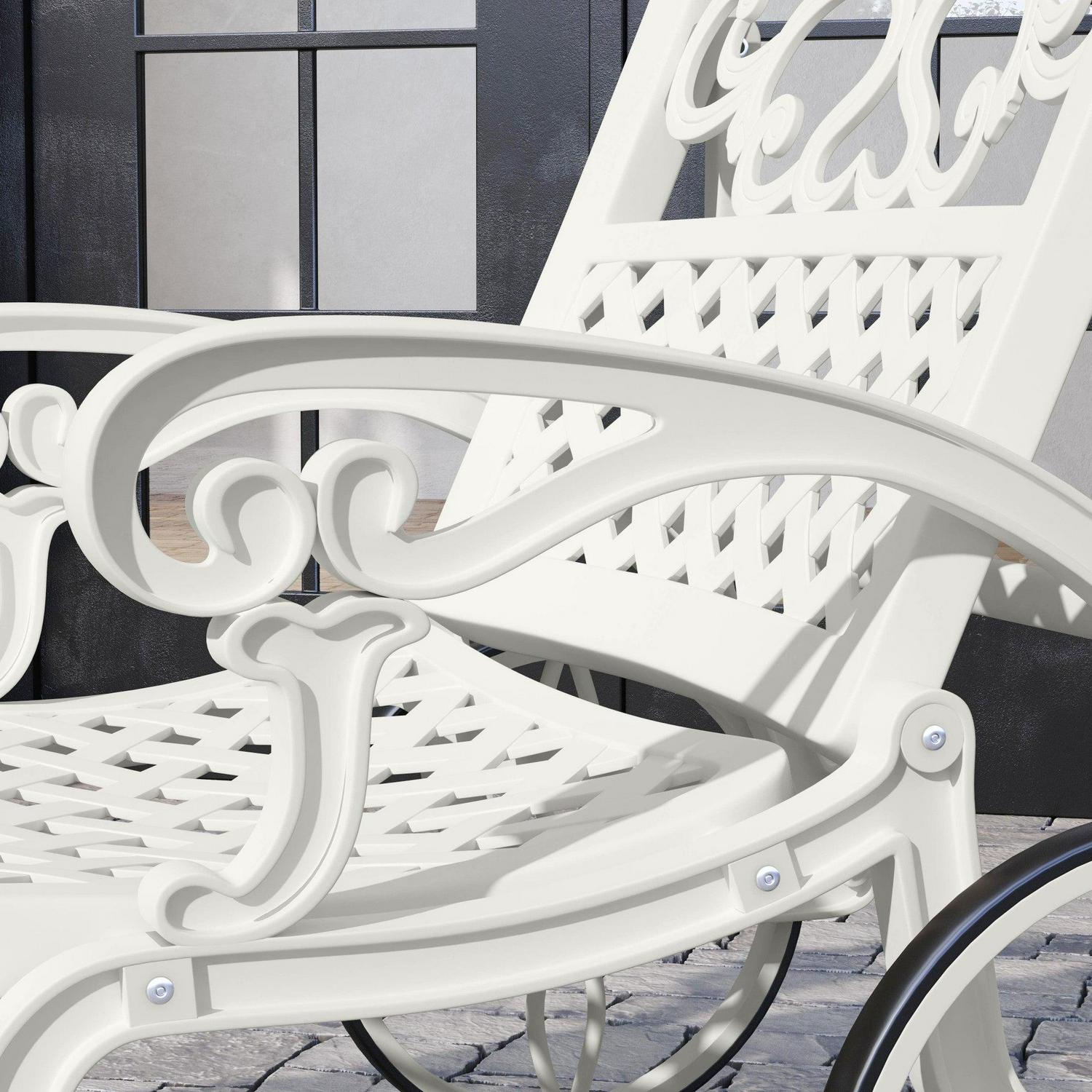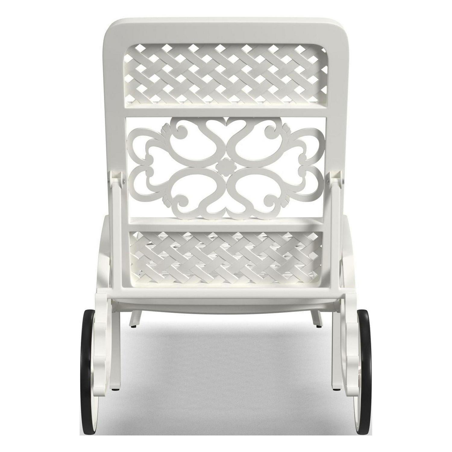 Turn an ordinary outdoor space into an oasis with this Homestyles Sanibel Chaise Lounge. This chaise lounge is constructed with white powder-coated aluminum for low-maintenance and lasting durability season after season. Two base wheels allow for easy moving and four recline settings allow you to sit all the way up or lay back. Simply add your own cushions to make it your style.