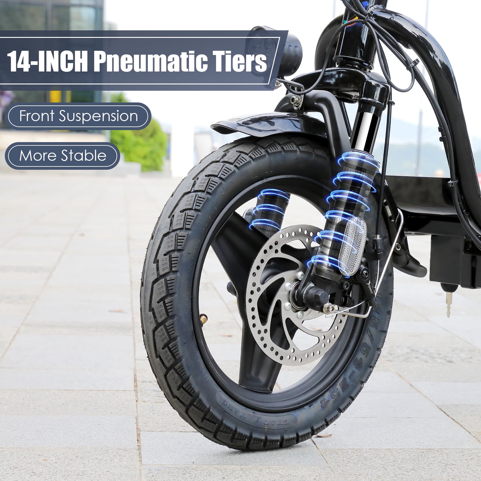 ⭐【Dual Shock Absorption & Large 14″ Tires】:The adult electric scooter features multiple shock absorption , including front and rear shock absorber and soft wide seat, significantly reducing discomfort. Its 14″ pneumatic tires provide excellent grip, high elasticity, and wear resistance. The extra-wide deck makes long rides enjoyable and effortless. ⭐【Portable and Durable Travel Partner】: Equipped with foldable handlebar, the e scooter can be easily stored and carried in your trunk, you can ride it anytime you like. The aluminum frame of this electric scooter is strong and durable, which can support a maximum weight of 300 pounds. The large capacity basket is prefect for shopping trips and short errands around the block. ⭐【LCD Display & Safe to Ride】: The LCD monitor shows the battery level, so you can get a clear picture of your riding. The effective front and rear disc brake on the e-scooters provide excellent stability and control. The high-brightness headlight and rear brake light keep your riding safe at night. ⭐【QUALITY ASSURANCE】: SANOPY electric scooter withe seat is strictly tested before shipment. We provide a 12-month warranty for the electric scooter.Only the seat and the basket attachment needed to be assembled after the 2 wheel electric scooter for adults arrives. We provide a 12-month warranty for the E scooter.If the problem cannot be solved, feel free to contact our customer service. About this item Brand: SANOPY Color: Black/White/Gray Age Range (Description): Adult Number of Speeds: 3 Wheel Size: 14 Inches Frame Material: Aluminum Suspension Type: Dual Brake Style: Disc Item Weight: 74.7 lbs Wheel Material Rubber Lithium Battery Energy Content: 374.4 Watt Hours Item Package Dimensions L x W x H: 51 x 27 x 9 inches Package Weight: 65 Pounds Item Dimensions LxWxH : 49 x 9 x 24 inches Warranty Description: 1 year warranty Material : Aluminum Suggested Users : unisex-adult Number of Items : 1 Included Components: 1 x Toolkit, 1 x User Manual, 1 x Power Adaper, 1 x Electric Scooter