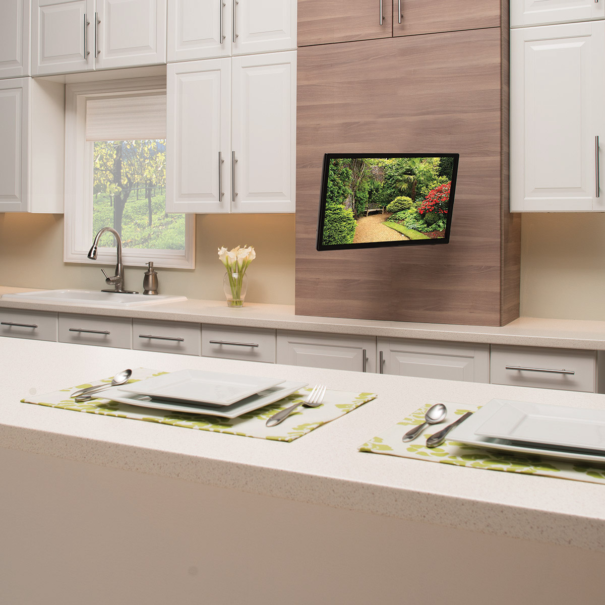 SANUS Premium Series VSF415 full-motion mount lets you enjoy a great picture no matter where you watch. Tilt, swivel, extend and level your TV without the need for tools. Unsightly cables stay concealed, and tool-free assembly ensures a quick and easy installation. Includes magnetic stud finder and level, template and hardware for easy installation.