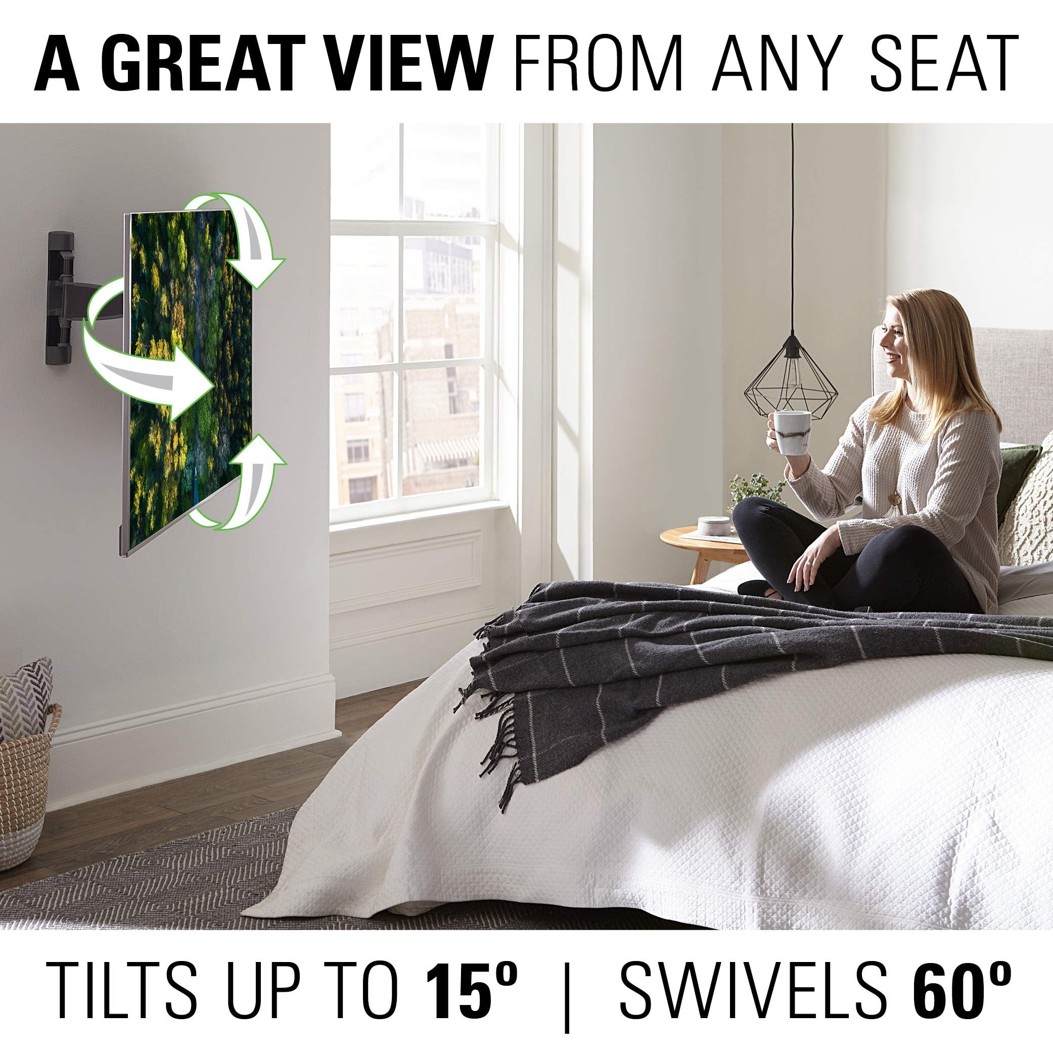 - Effortlessly extend, tilt and swivel your TV regardless of its weight or thickness