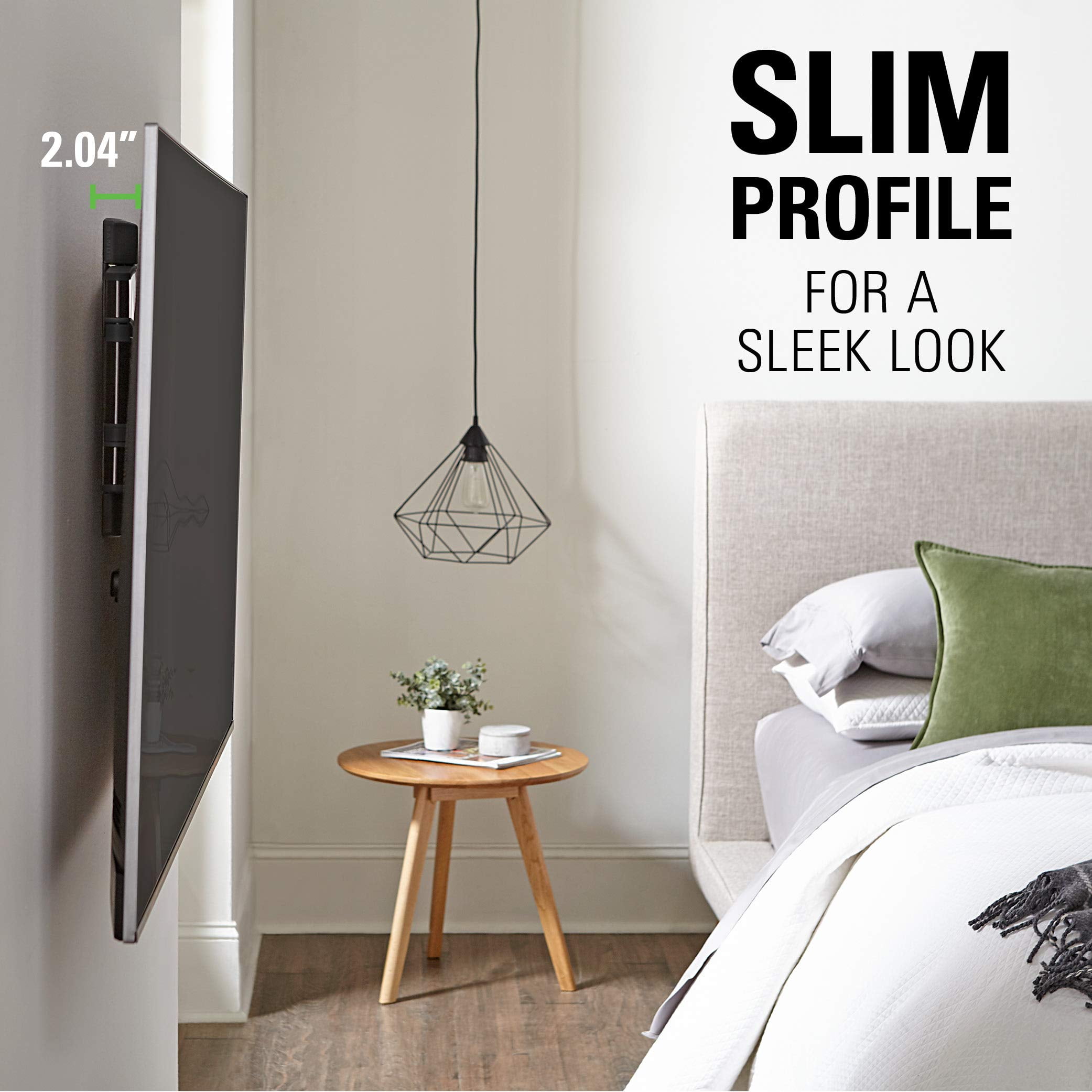 - Places TV just 2.04” from the wall for a streamlined look that complements today’s sleek TV