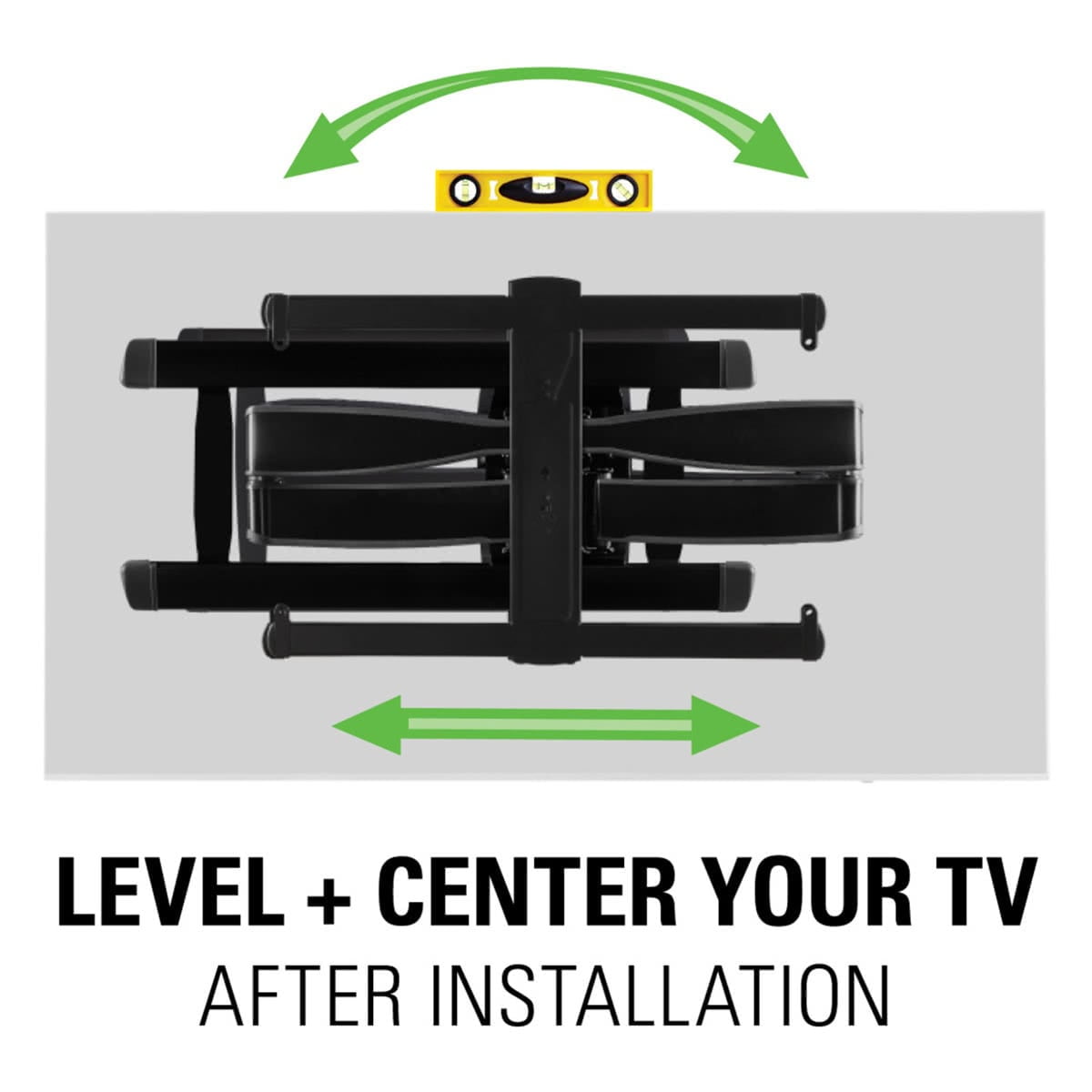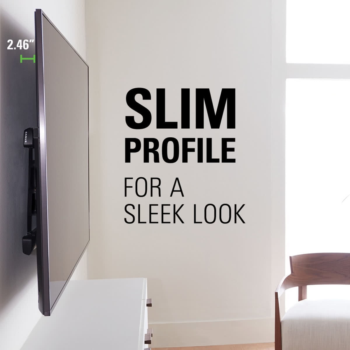 Designed to blend seamlessly with TVs and décor the Advanced Full-Motion Premium TV Mount was inspired by the sleek look of modern TVs and ultra-high-end kitchen appliances. Features Stylish Brushed Metal Steady Set™ Position Locking Places TV Just 2.46” From the Wall Integrated Cable Management VESA 200 x 200 through 600 x 400 Up to 15º of tilt and 55º of swivel left to right Design Beneath the mount’s stylish brushed metal exterior is an ultra-strong solid steel frame that provides maximum support ensuring your TV will stay securely in place. With a lower profile depth than traditional full-motion mounts the Advanced Full-Motion Mount positions TVs closer to the wall creating a more streamlined look. FluidMotion™