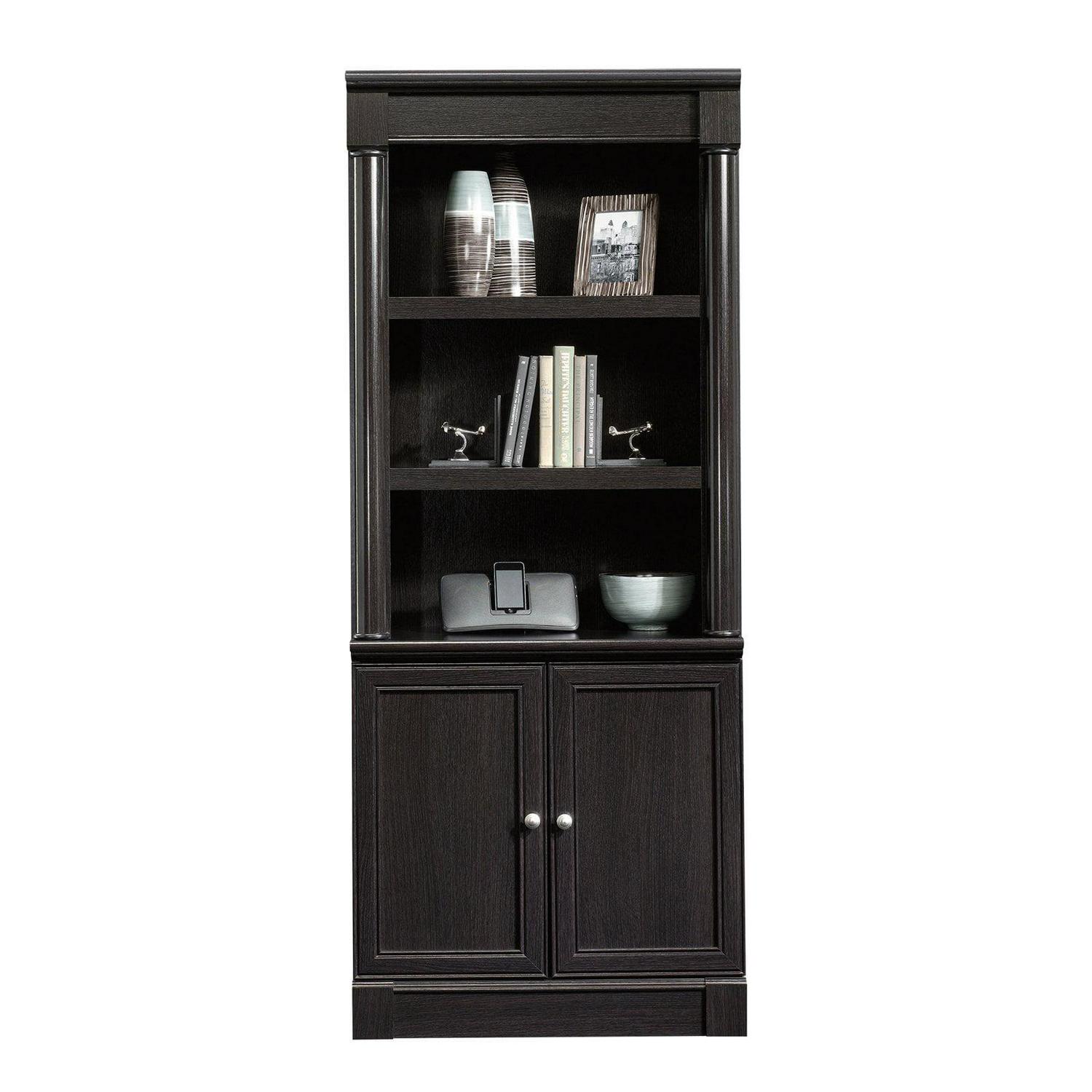 Class up your living room or office with this library with doors from the Palladia collection. It features three adjustable shelves so you can store and display books, trophies, plants and more! It also includes hidden storage behind the two doors and cord access through the back panel. Finished in a stylish Wind Oak, this snazzy bookcase will add some charm to any room.