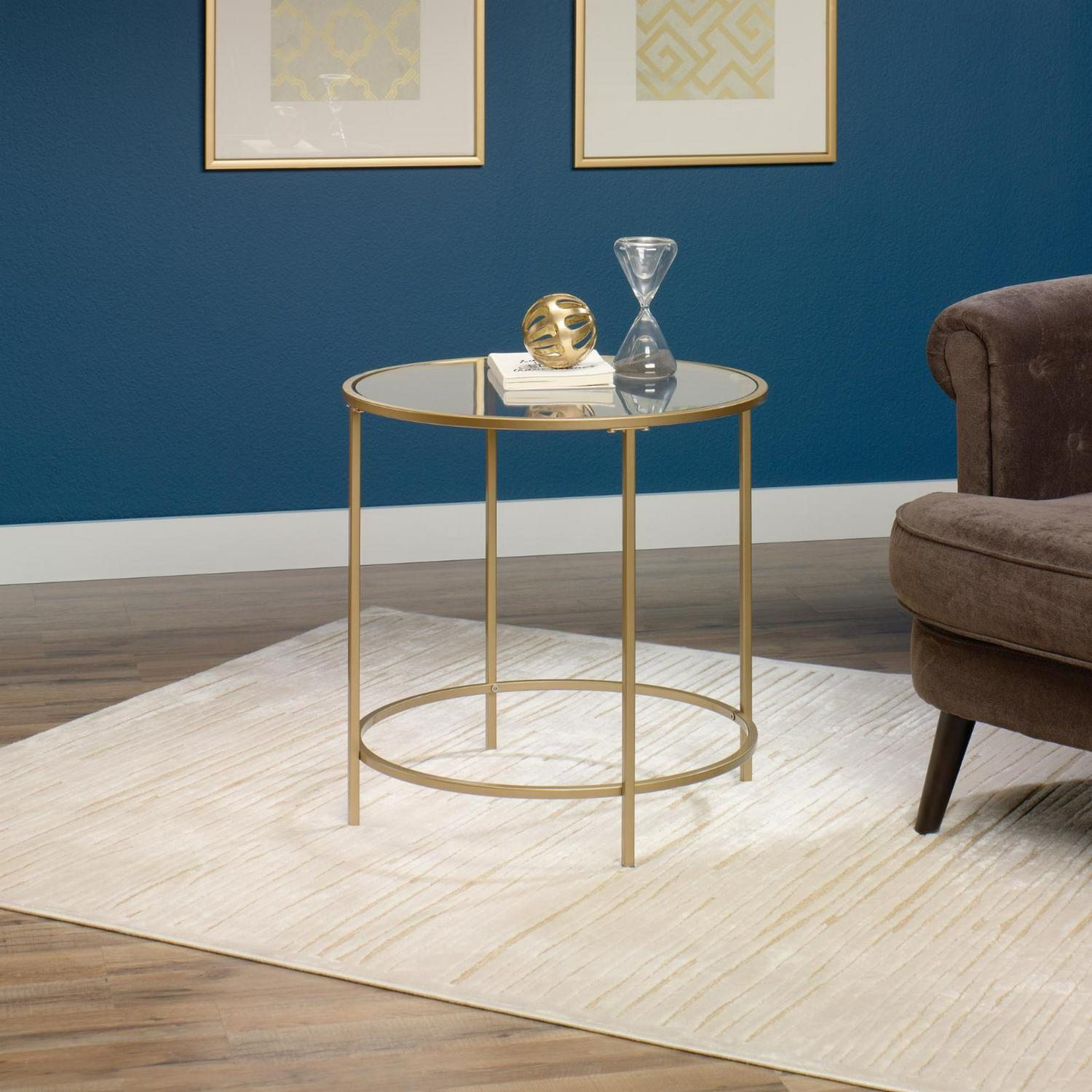 Sauder 417829 Int Lux Side Table Round, Glass / Satin Gold Finish