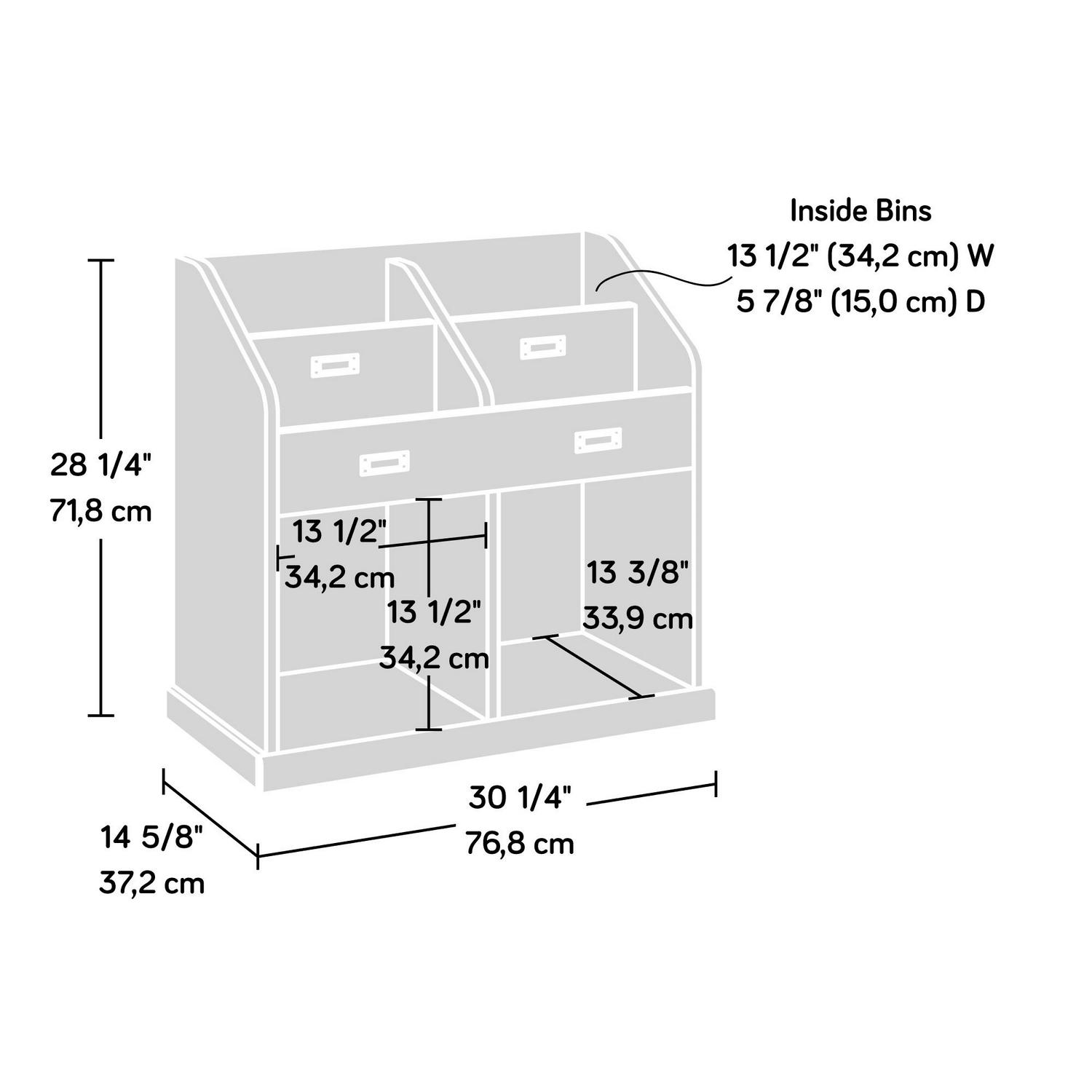 – Divided storage for books, binders, magazines, etc