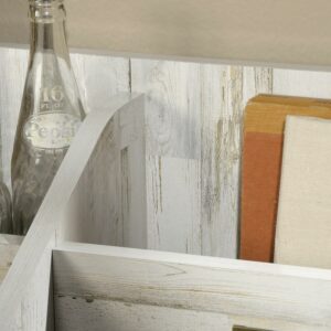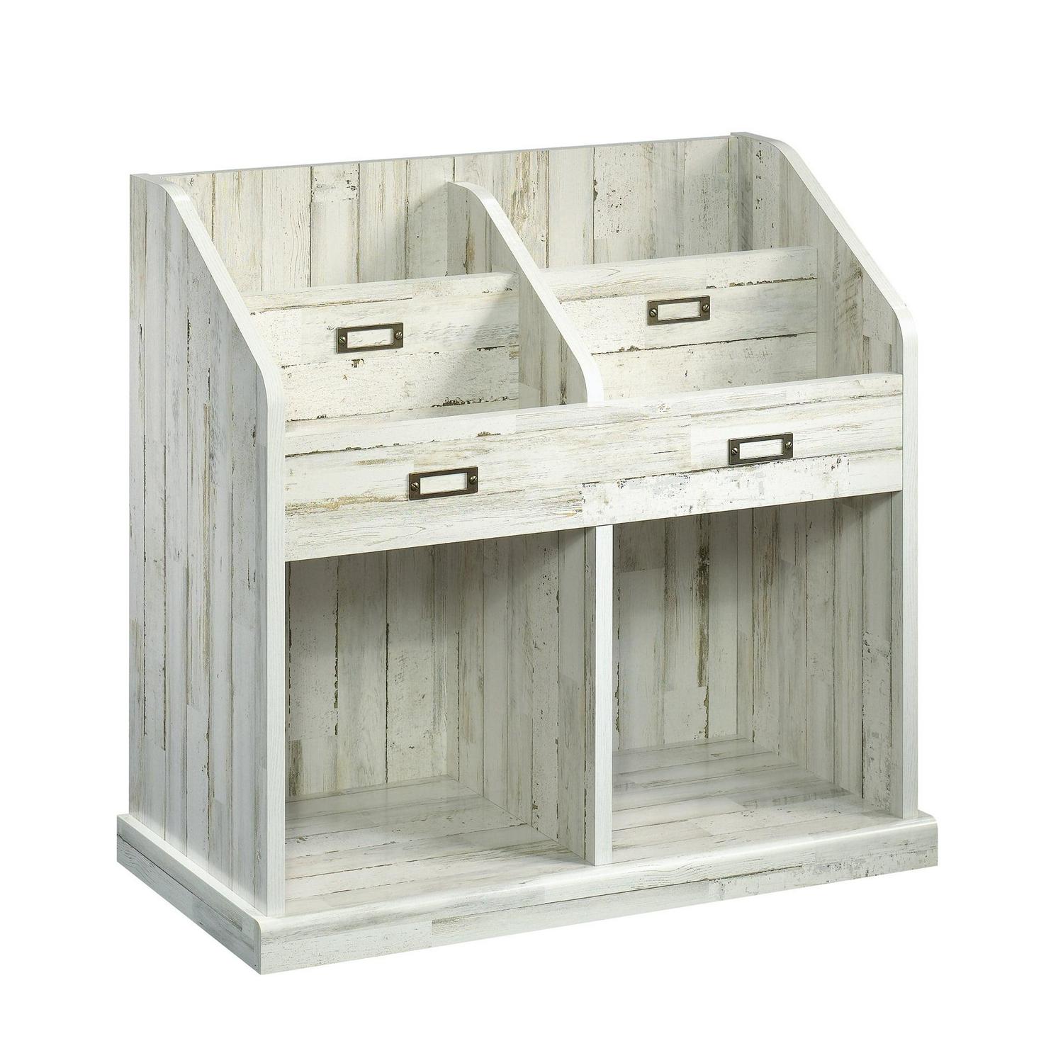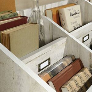 Who could say no to a little extra storage space in their home Create a convenient spot for easy access storage all while adding one-of-a-kind style and design to your home with this bookcase from the Barrister Lane collection. This handy open storage bookcase features divided upright slots that are perfect for storing a variety of different items like your favorite books, work binders and your collection of magazines. Each slot accommodates an ID label tag so you can easily organize and know where all your things are. This bookcase also features two spacious cubbyholes that are ideal for storing and displaying items like organizing bins, decorative plants, board games and so much more! Style it how you like its reversible back panel features both Cobblestone and White Plank finish. Its versatile design and charming good looks make it a great addition to any room in your home. Finished in White Plank, this divided bookcase is just what your home needs!