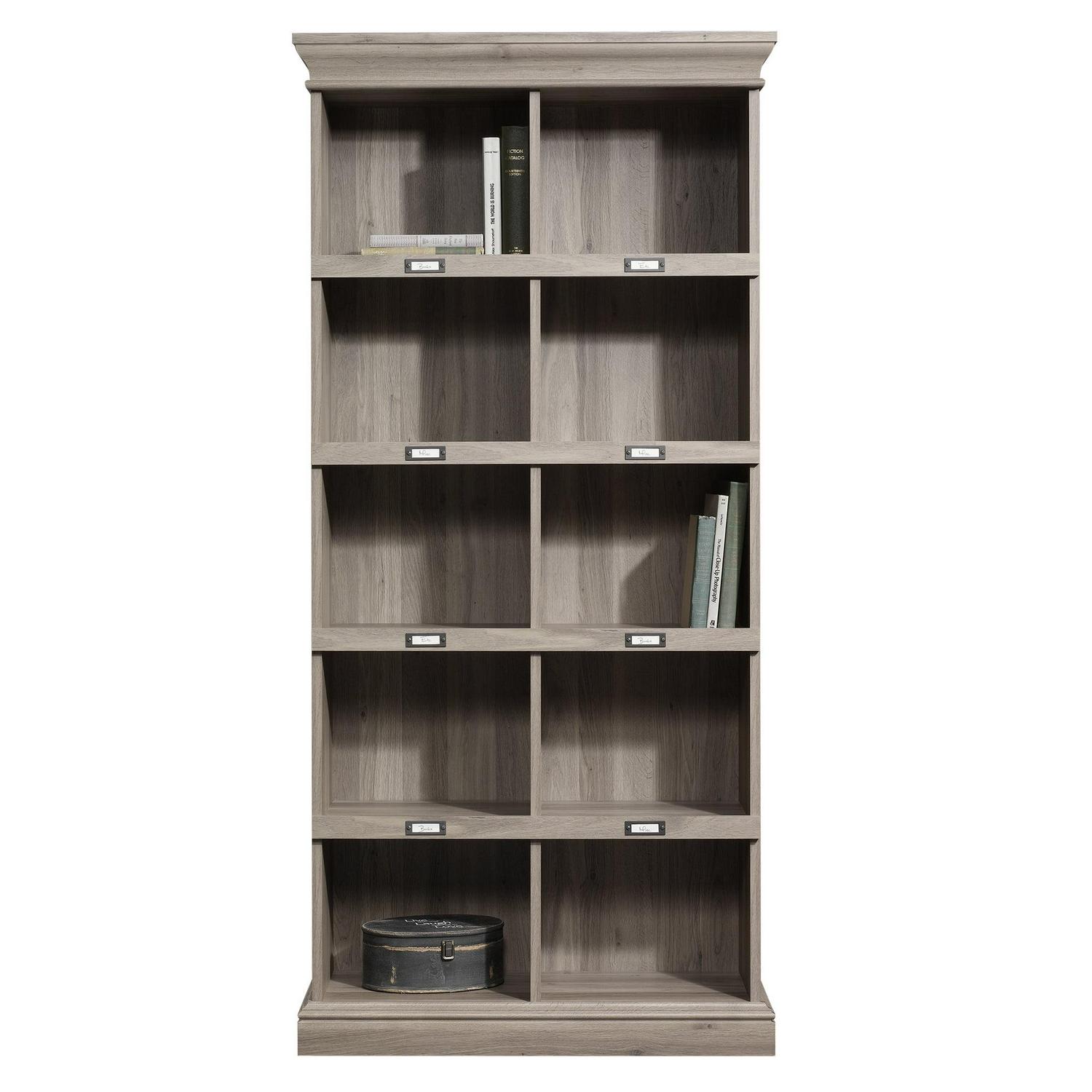 Create versatile storage options in your home without sacrificing style with this tall bookcase from the Barrister Lane collection. This handsome bookcase features ten storage cubbyholes for you to organize, store and display all your home essentials! Your collection of cookbooks, decorative knick-knacks, miscellaneous office supplies, and bins full of household items too. It has a place for all your stuff! Each cubbyhole accommodates an ID label tag so you can keep your home organized and clutter-free. Easily label each cubby so you can find what you are looking for fast! Its convenient storage options and beautiful style make this bookcase a perfect fit for any room in your home In your office, the living room, down the hallway, or even in the bedroom! It looks good no matter where it stands! Finished in Salt Oak, this one-of-a-kind tall bookcase is the solution to all your storage woes.