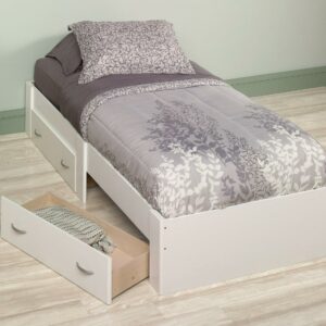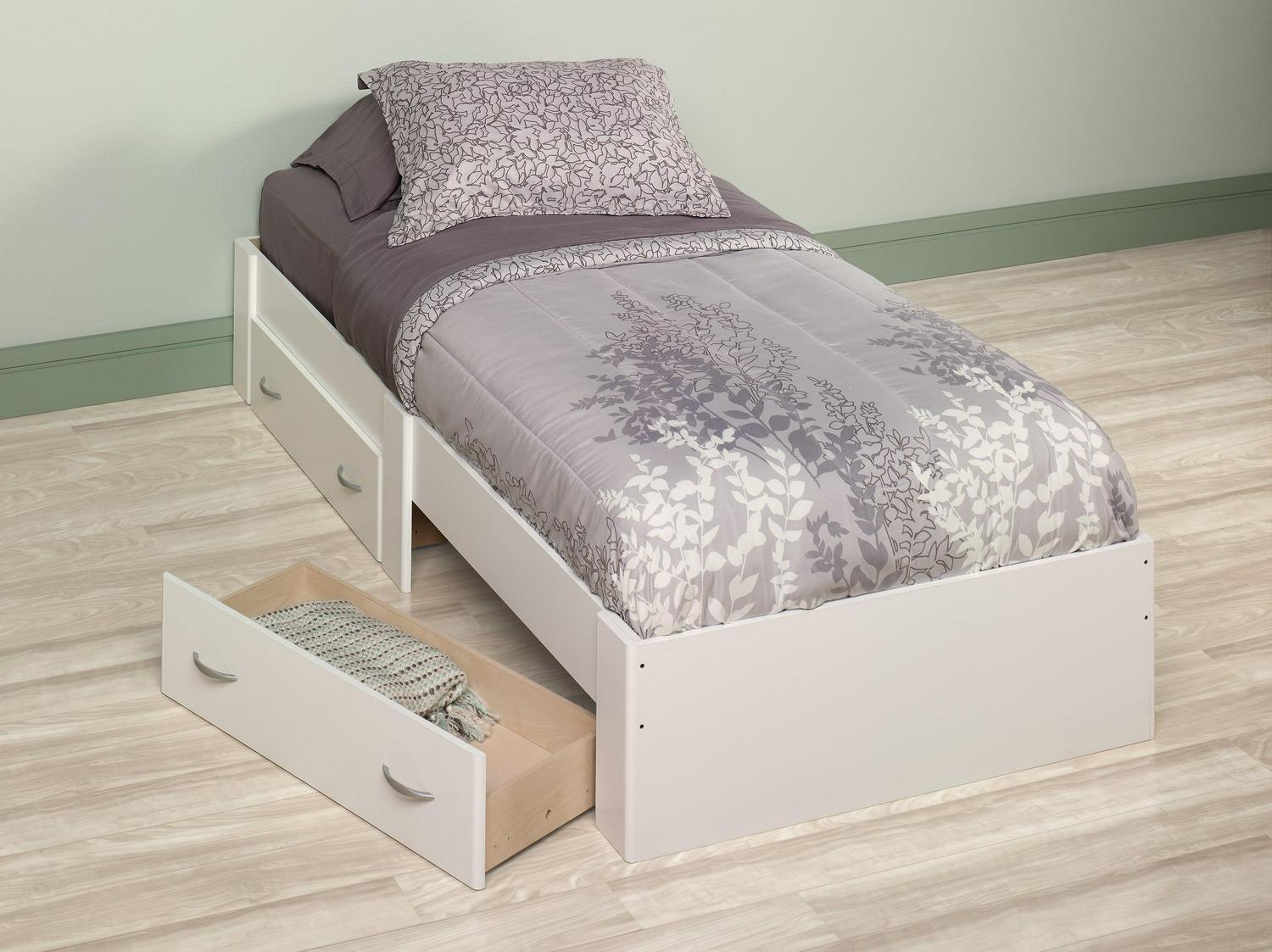 Time for a snooze Grab a blanket and cozy up on this twin platform bed from the Beginnings collection. This stylish platform bed accommodates any twin-sized mattress and features convenient lower storage drawers so you can store clothes, toys, and more! Finished in a sleek Soft White, this charming bed will have your bedroom feeling like a dream.