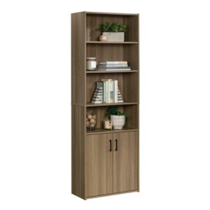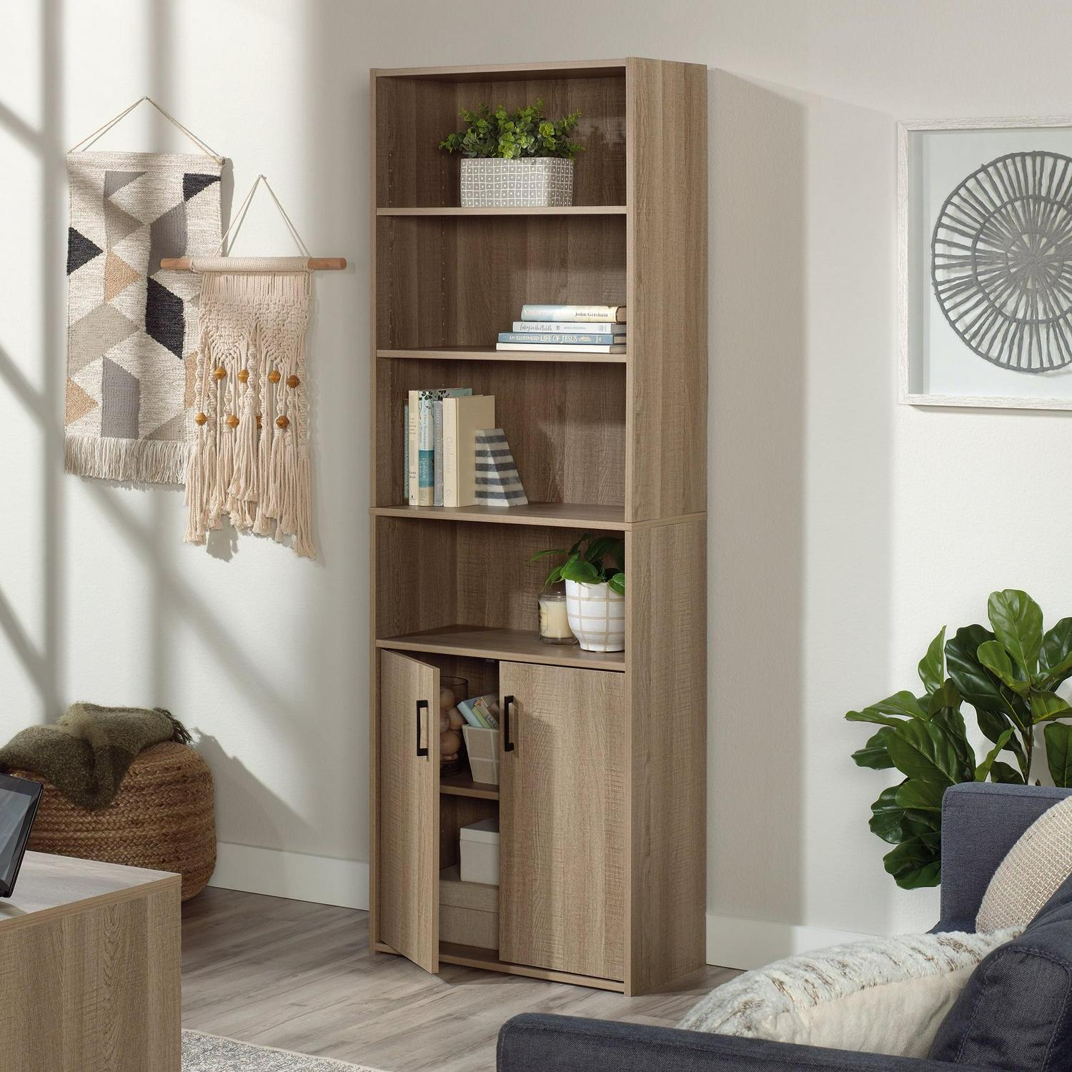 Sauder Beginnings Tall 4-Shelf Bookcase with 2 Doors, Summer Oak Finish