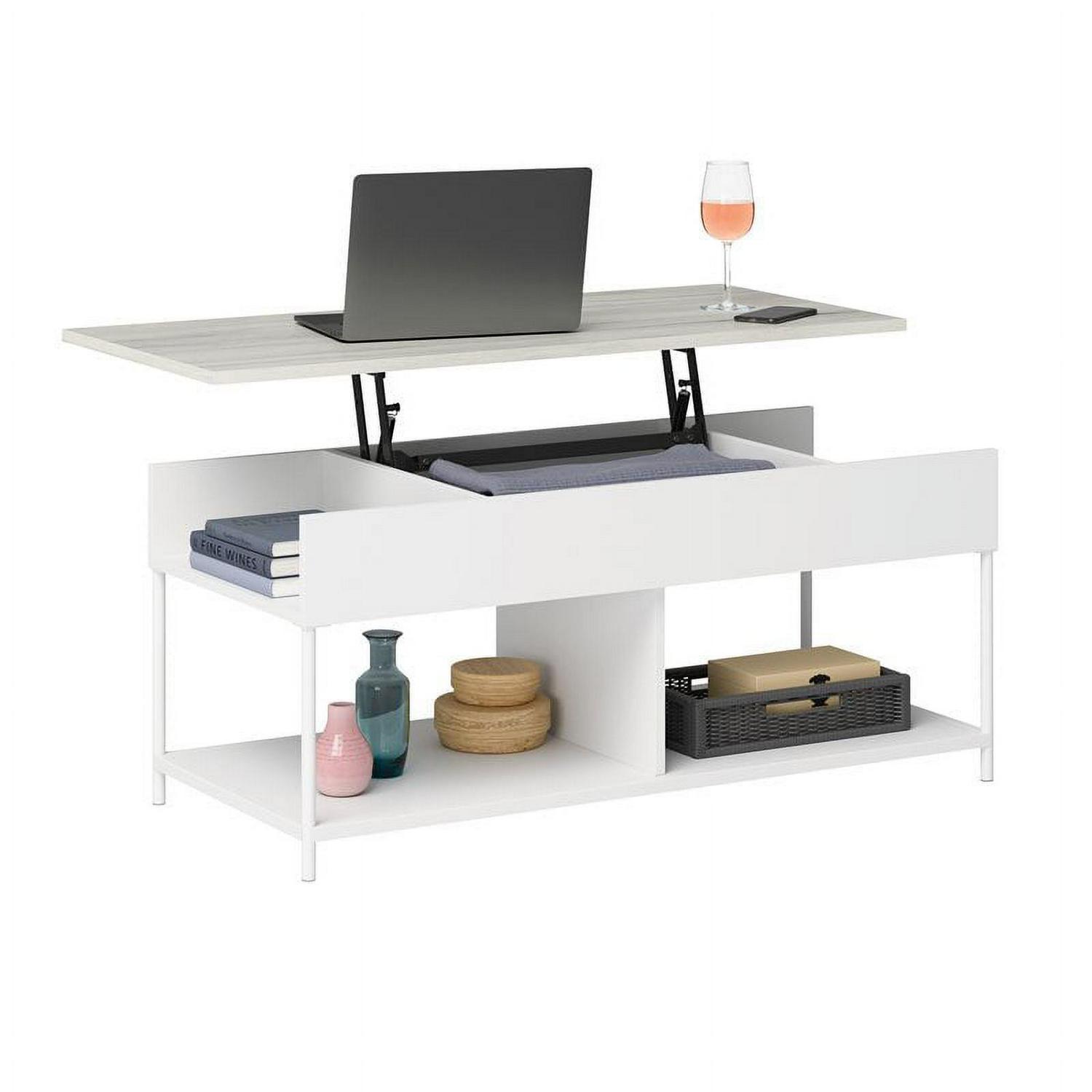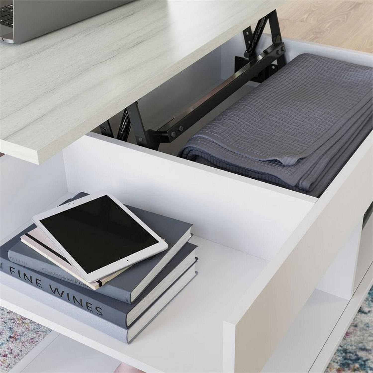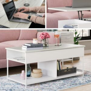 Sauder Boulevard Cafe Lift-Top Coffee Table with Open Shelves, White Finish