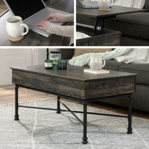 – Sauder Canal Street Industrial Lift-Top Coffee Table with Storage, Carbon Oak Finish: