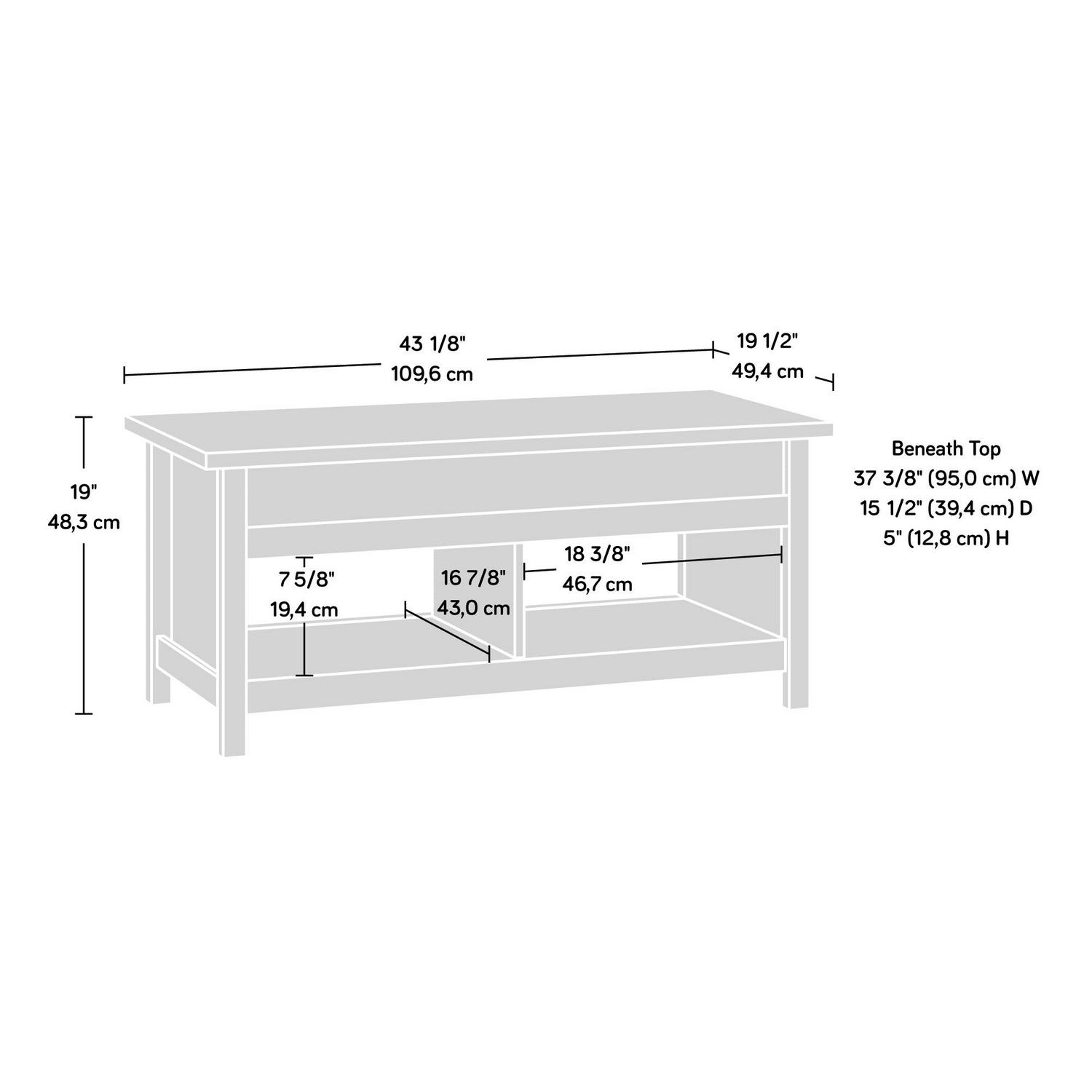 – Sauder Cannery Bridge Lift Top Coffee Table, Mystic Oak Finish:Assembled dimensions 43.15″ L x 19.291″ W x 19.134″ HTop lifts up and forward to create versatile work surface – browse online or eat dinner while relaxing on your couchHidden storage beneath top helps to hide clutter and chaosOpen shelves for additional storage and display of your favorite home decorFinished on all sides for versatile placement anywhere in your homeMystic Oak finishAssembly requiredModel # 422876Be sure to check out the Sauder Cannery Bridge collection for more great items!