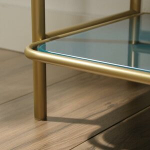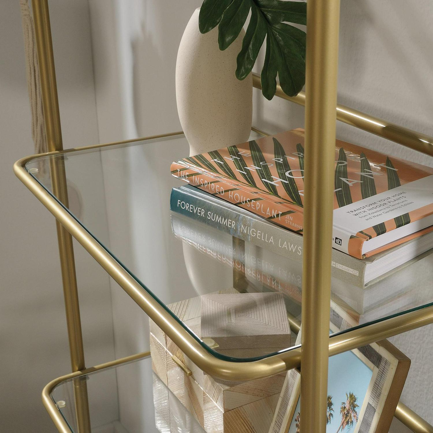 Sauder Coral Cape 5-Shelf Bookcase with Glass Shelves, Satin Gold Finish