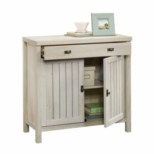 Transform your home into a cottage-inspired retreat with this Costa collection. This beautiful cabinet features a thick table top with a spacious surface to display all your around home decor an accent lamp, photos of family and friends, and a jar of seashells. Its large drawer opens and closes on smooth, making it perfect for easy access storage of small office supplies and clutter. Behind its double doors is a hidden storage area that includes a spacious for convenient storage and organization to give this cabinet its unique coastal vibe. This adds beautiful style and desired functionality to any room in your home dining room, office, living room, or even the bedroom! Finished and accented with brass hardware, this stunning cabinet is the solution to all your storage woes.