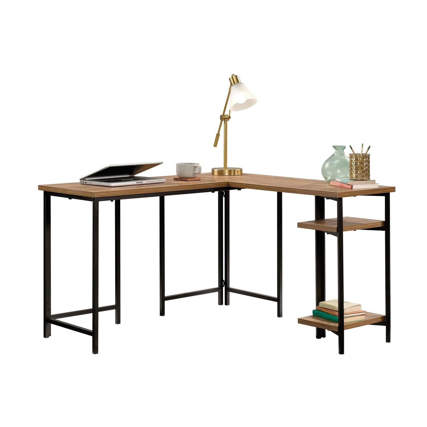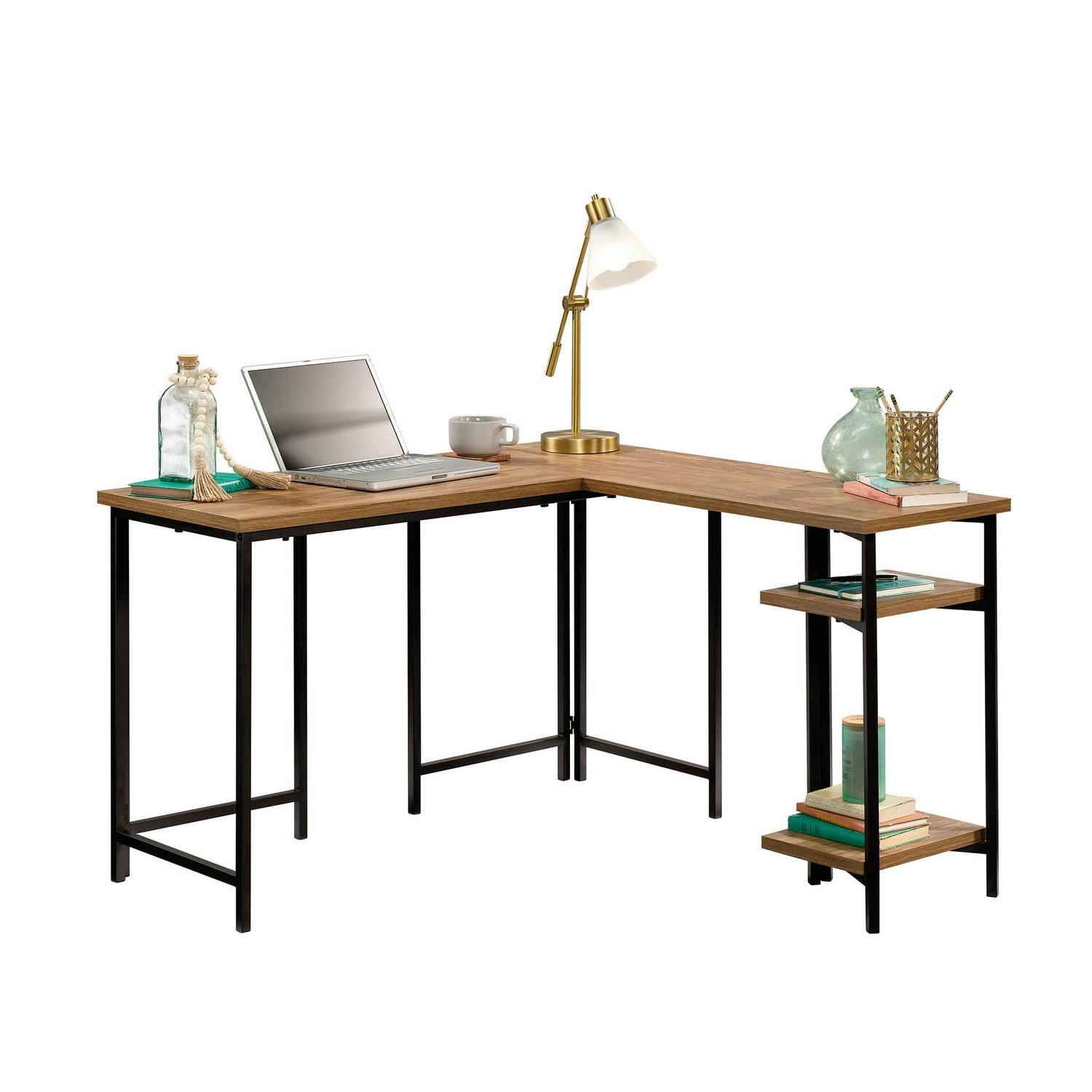 Sauder Curiod Open Shelf Wood and Metal L-Shaped Desk, Sindoori Mango Finish