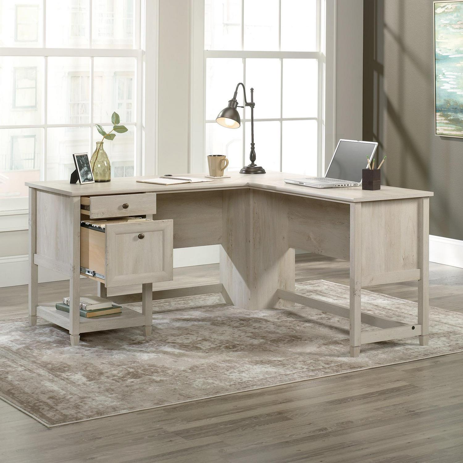 – Sauder Edge Water L-Desk, Chalked Chestnut Finish: