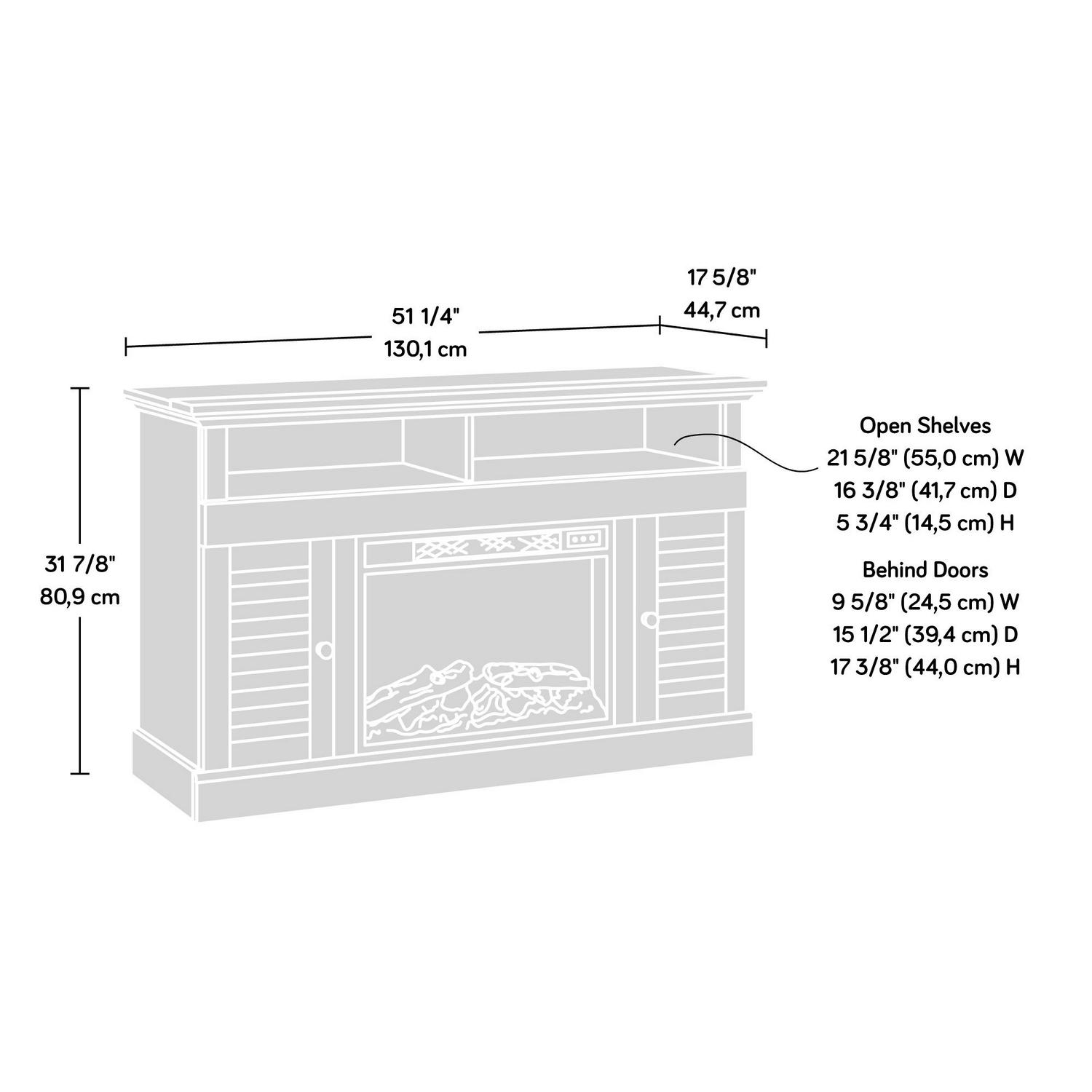 – Electric firebox with remote control and built-in overheat protection heats up to 400 square feet