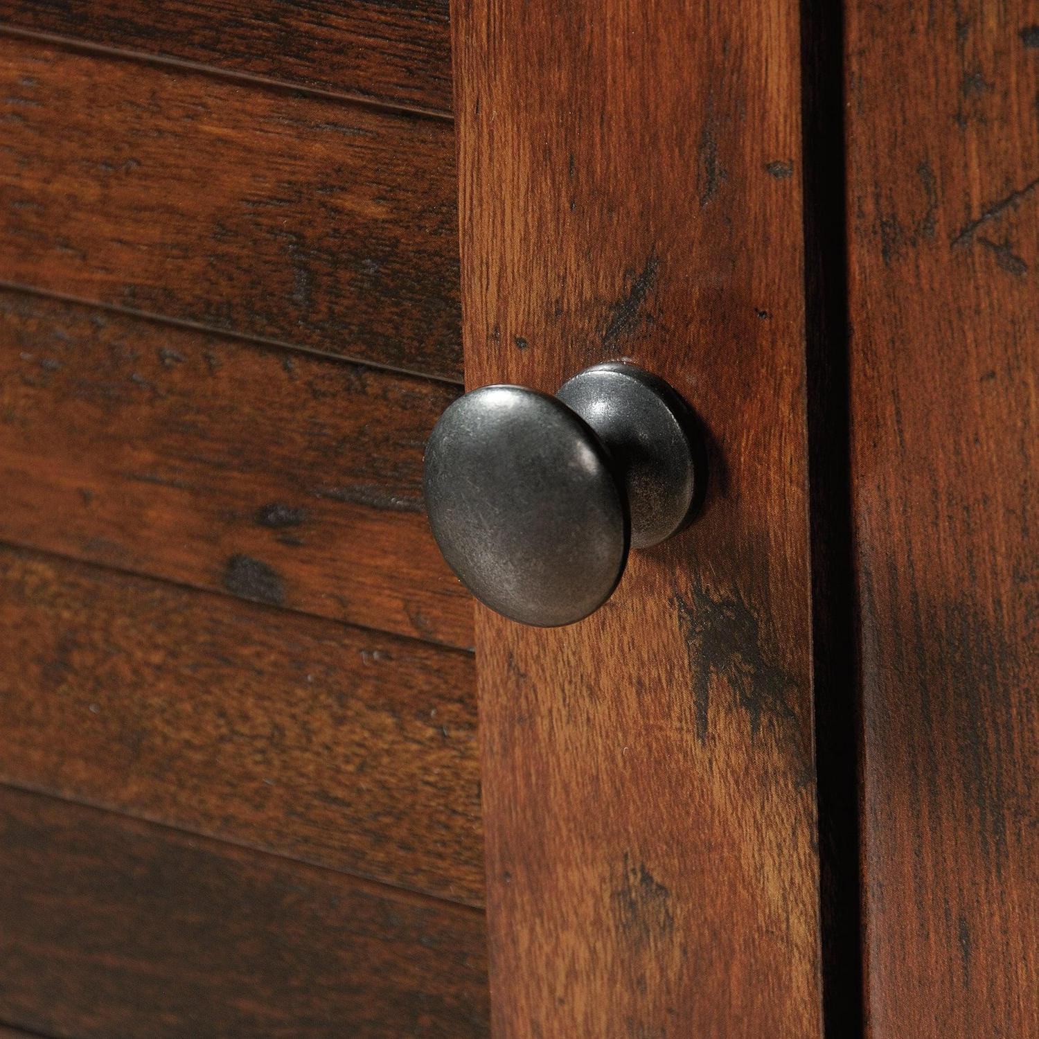 - Adjustable shelf behind each louver detailed door for flexible storage options