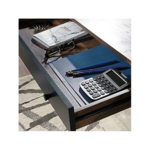 Working from home never looked so good. Dress up your office with this desk from the Harvey Park collection. This modern home office desk features a spacious work surface that offers room for all your office essentials laptop, books, papers, you name it! This home office desk features an easy gliding pencil drawer for writing utensils, your planner, sticky notes, or whatever else you need on hand and easy to find. The file drawer of this computer desk with storage includes full extension slides and holds letter-size hanging files. Your documents and papers will no longer be shoved haphazardly in a drawer to be forgotten about. This desk with file drawer storage is finished on all sides, so it will look polished from every angle no matter how you arrange it in your home. Finished in Grand Walnut with black accents and a powder coated metal base, this modern metal and wood desk is just what your office has been missing.