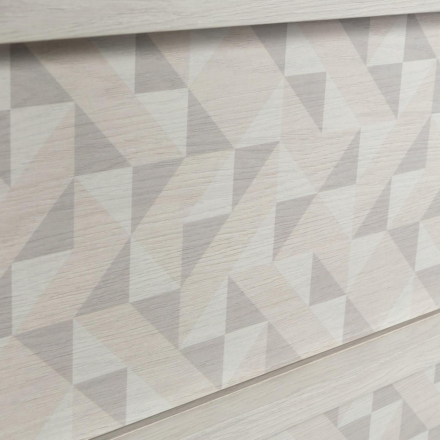 - Drawer fronts feature geometric triangle pattern for a soft, sophisticated look