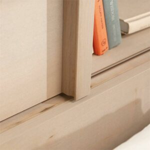 – Hidden storage behind sliding doors for nighttime necessities