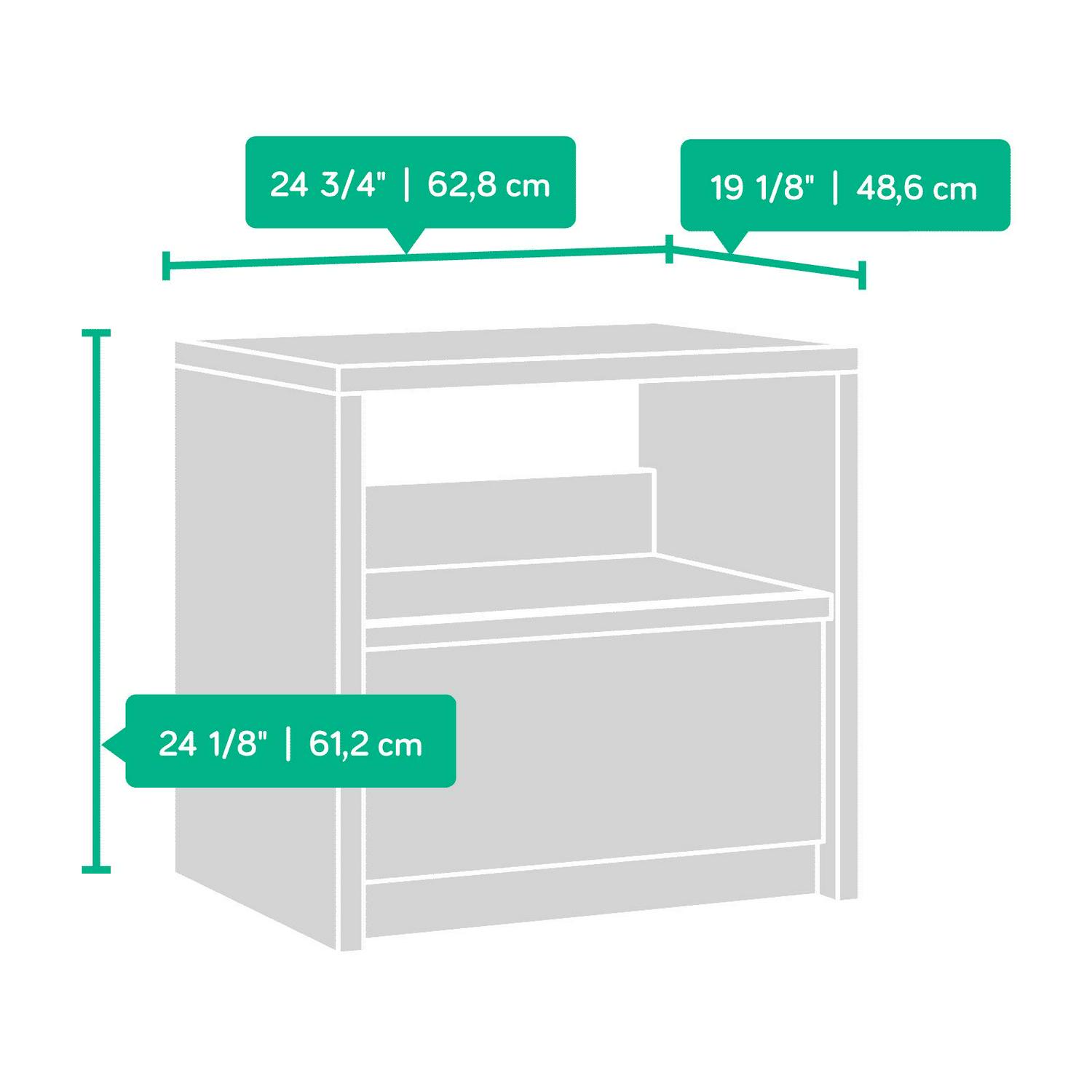 With a minimalist design and convenient bedside storage, the Sauder Harvey Park Nightstand complements bedrooms of any style. This handsome nightstand is constructed from engineered wood and comes in a warm grand walnut finish. It has one easy-glide drawer that slides out effortlessly on metal runners with safety stops, providing a handy space to tuck away bedroom essentials. It also has a cubby-style open shelf for additional storage for display space for decorative items. This sleek nightstand blends into existing décor from contemporary to traditional.