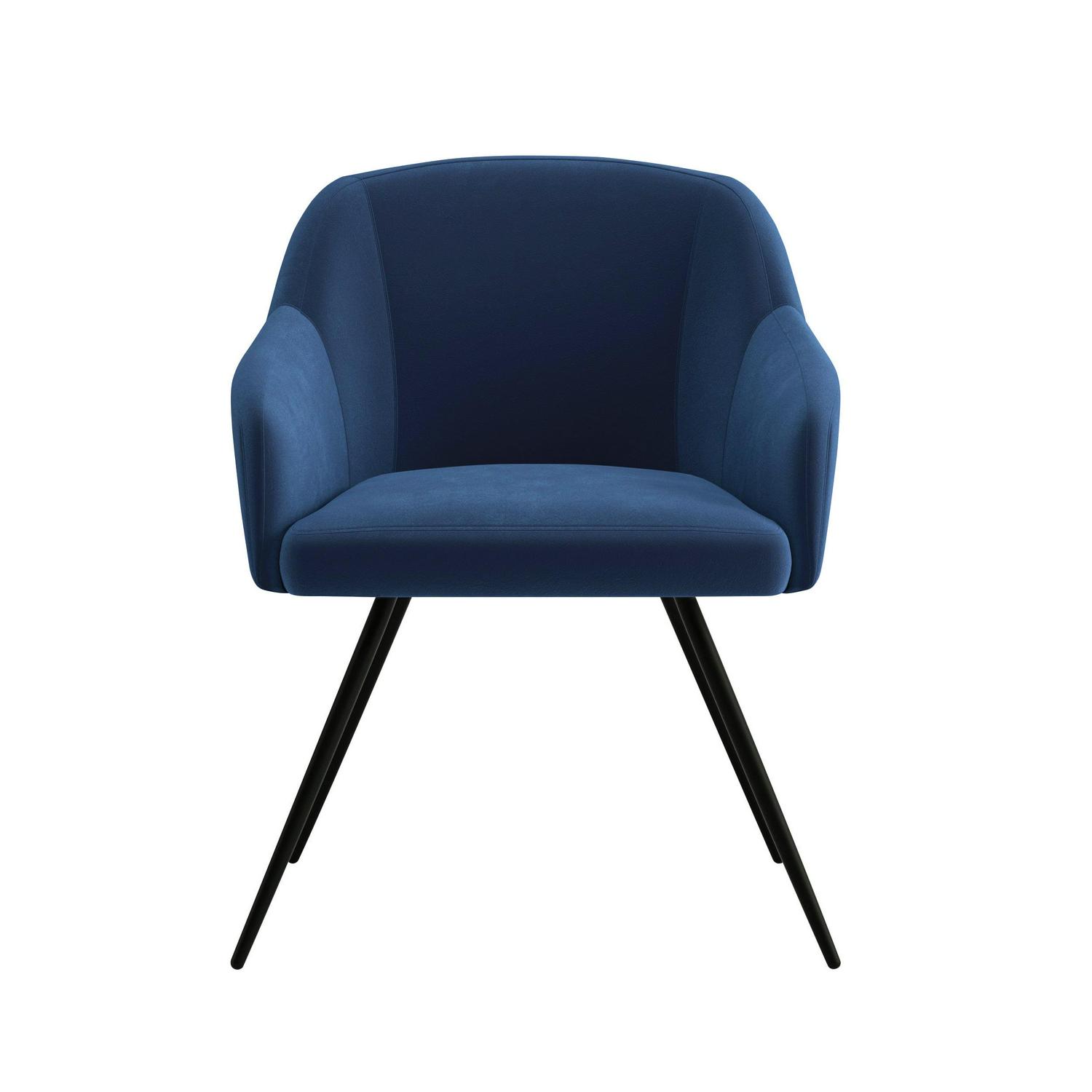 No home is complete without an attractive occasional chair. Easily update the look of your home with the modern design and beauty of this blue velvet accent chair from the Harvey Park collection. This contemporary occasional chair features a large, cushioned seat and back rest for added comfort and convenience while you sit down to slip on your shoes or relax and scroll on your smartphone. Its dark blue velvet fabric gives this chair its one-of-a-kind style and luxurious appeal that will boost the aesthetic of your home. This blue occasional chair also features four black, powder-coated metal legs for added durability and decorative detail. Attractive from every angle, this contemporary accent chair adds elegance and functionality no matter where it stands in your home in the living room, office, or dining room. This handsome occasional chair for living rooms is the perfect addition to your home.