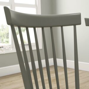 Classic farmhouse style with modern charmadd additional seating to your home with this pair of spindle back chairs from the New Grange collection. This wooden spindle chairs (in a set of two) features a solid wood construction for added durability while you sit down to tie your shoes, relax around the dinner table, or take a load off after a long day of work. A modern farmhouse chair adds simple style and charming design no matter where you use it in your home as additional seating in a living room, or in the dining room. The farmhouse spindle chair comes in a set of two for double the style and seating. Buy multiple sets for a complete look because you never know when family and friends will pop in to visit. The back detailing gives this spindle chair a classic, farmhouse appeal that will complement any room of your home. Finished in Pewter Green, this handsome set of wooden chairs gives you the style you have always wanted with the functionality you need. This item is for residential use only.