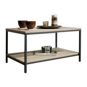 Give your home a chic industrial update with this coffee table. Its spacious tabletop provides you with room for magazines, mail, coasters, and of course your cup of coffee. It also features a large, lower open shelf for additional storage and display. Constructed with a durable, black metal frame and finished on all surfaces in Charter Oak, this stylish coffee table will complete the look of your living room. We hope you like what you see. Our designers travel the world and bring back the best and latest in style, finish, and color trends. This inspiring world travel is evident in the cutting-edge and innovative furniture solutions we offer to you! Other affordable furnishings from the collection (sold separately) are available to complete the look.