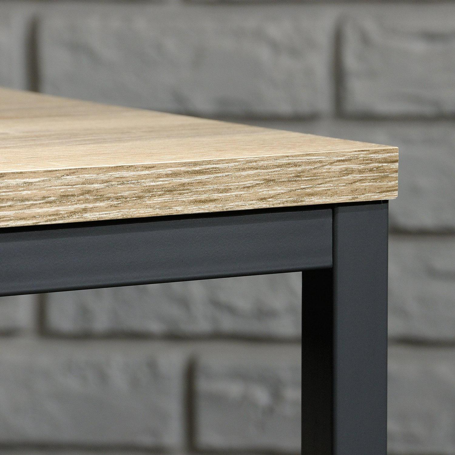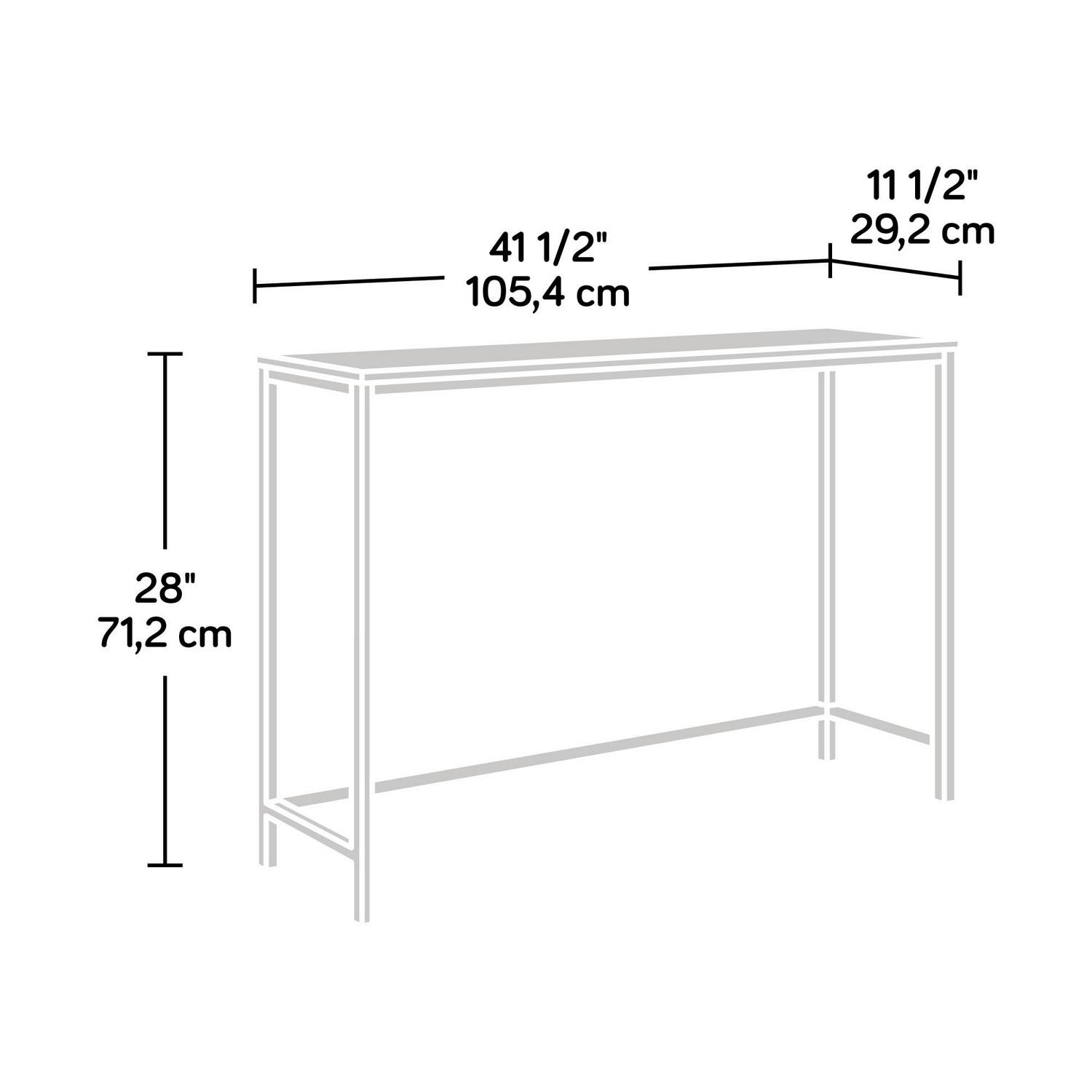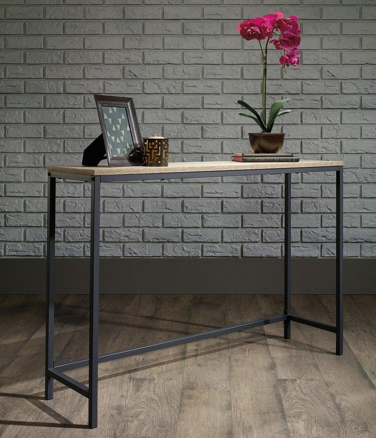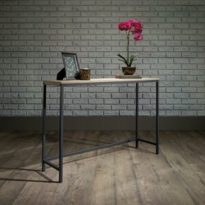 This Sauder North Avenue Console Table in Charter Oak makes a simple yet stylish addition to your living space. It features a black metal frame construction for durability and strength, and a charter oak finish on all sides. This Sauder console table is ideal for placing a house plant, ornament, framed picture or other small items on top of. It looks especially gorgeous when placed in an entryway or other transitional area in your home.