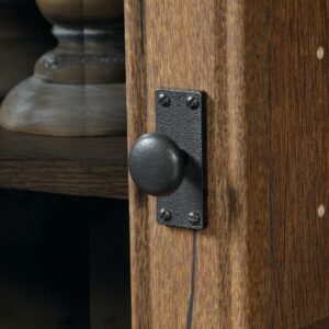 Give your living room a fresh new look with this TV stand from the Palladia collection. It accommodates up to a 60″ TV, making it perfect to gather around during the big game or the premiere of your favorite show. Behind each of the framed, tinted glass doors is an adjustable shelf for storage and display. It also features two adjustable shelves in the center to hold all your video and gaming equipment. Finished in Vintage Oak, this stylish TV stand is ready to entertain.