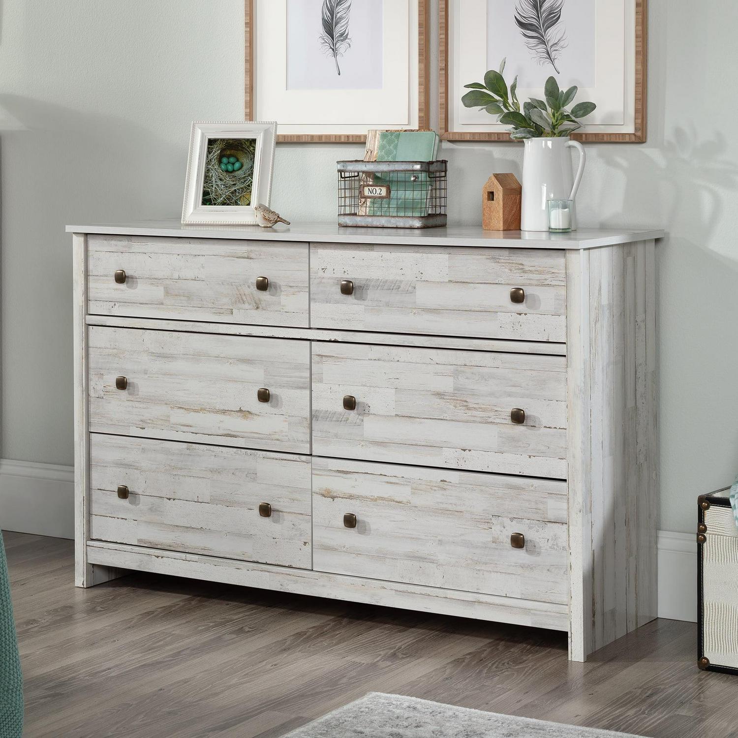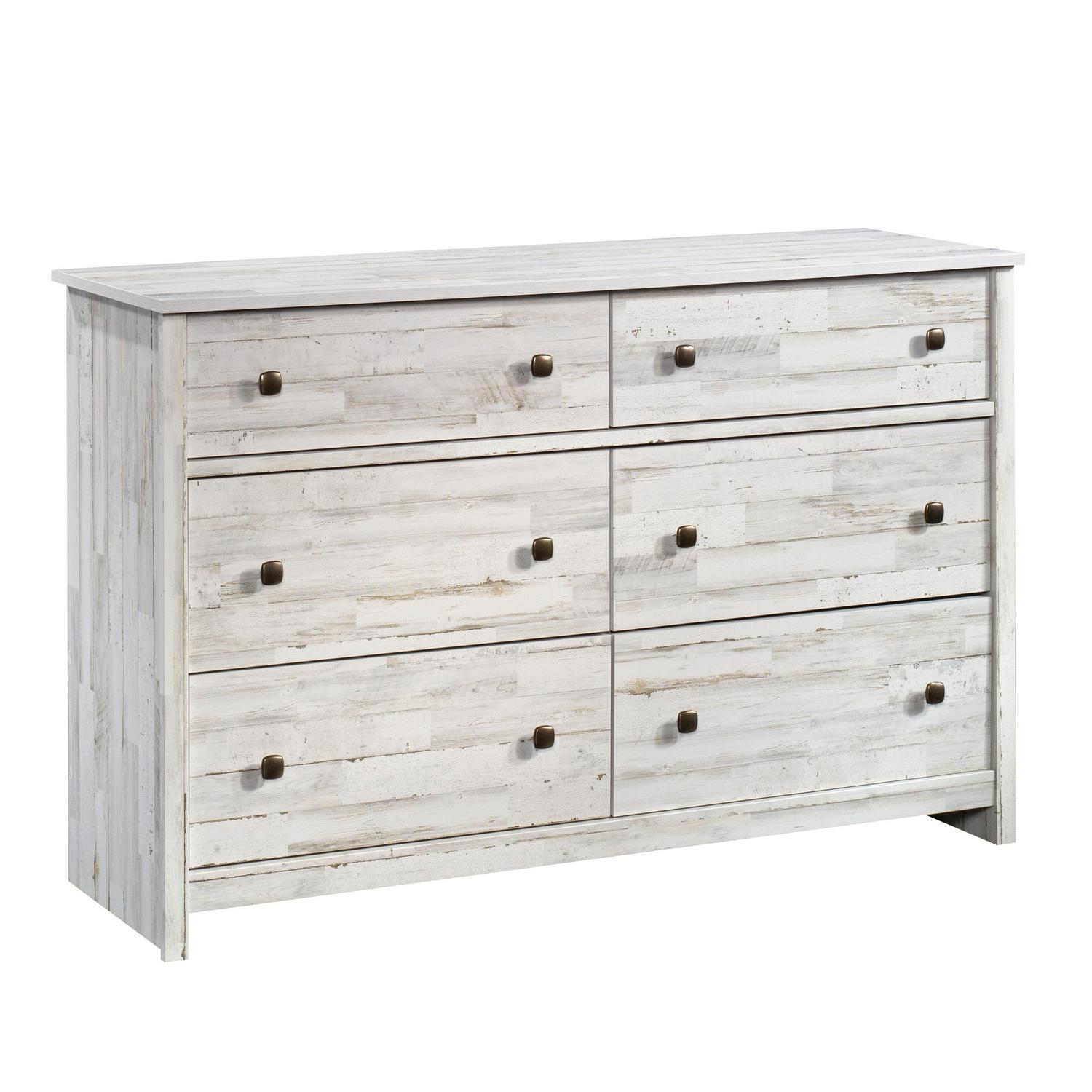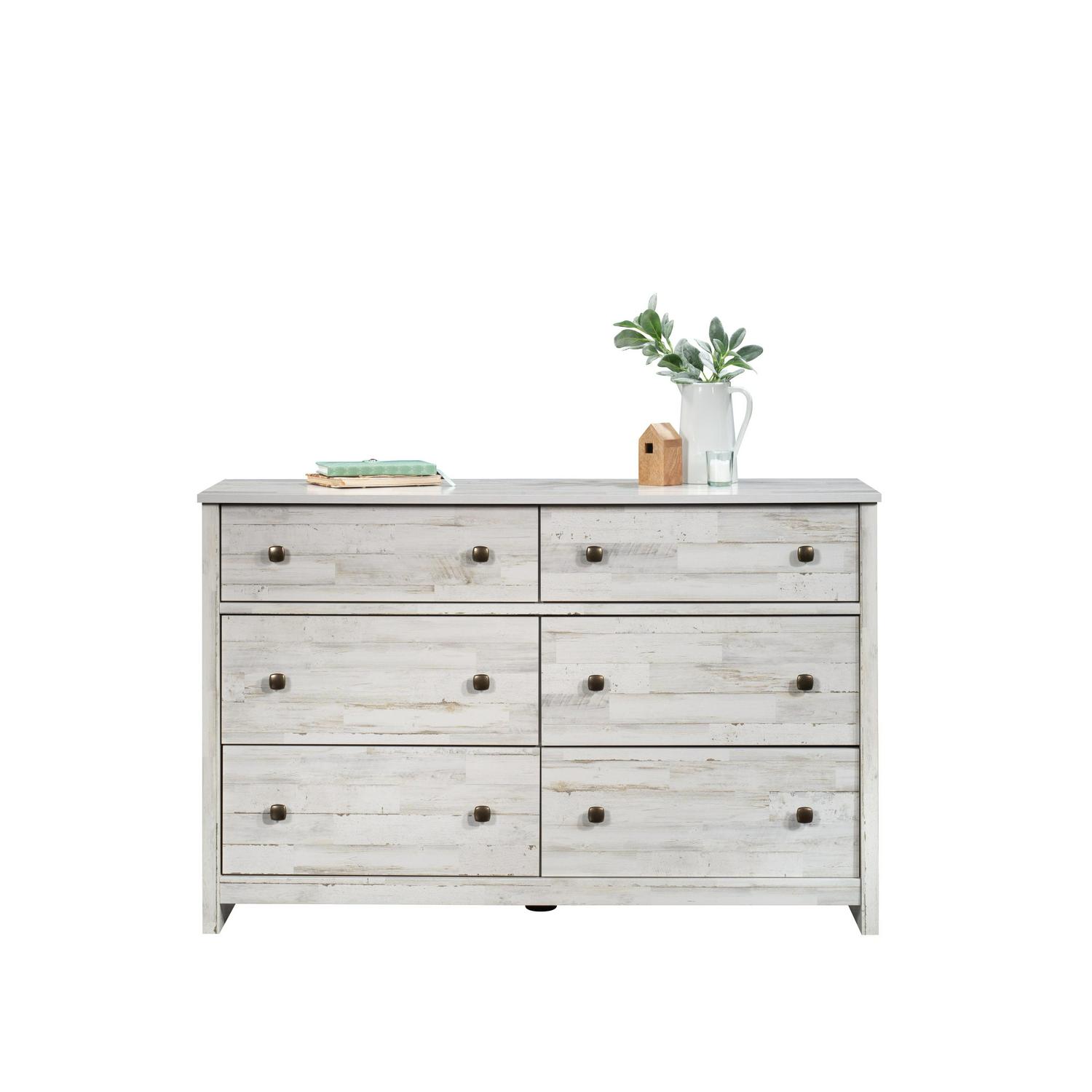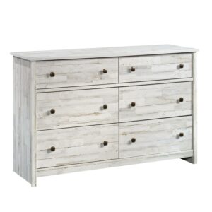 – Sauder River Ranch Rustic 6-Drawer Bedroom Dresser in White Plank, White Plank Finish: