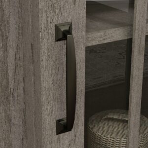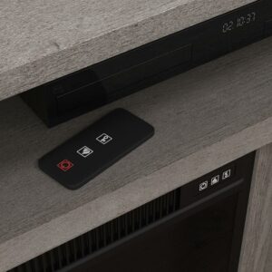 It’s time for an entertainment upgrade! Update the look in your living room with the rustic-inspired style and functional design for this entertainment/fireplace credenza from the Sauder Select collection. This living room TV stand accommodates up to a 65″ TV, making it the perfect spot to gather around to catch the big game, play video games, or enjoy movies with the family. Create an extra cozy vibe in your home with the electric firebox that heats up to 400 square feet. It includes a remote control and built-in overheat protection. The divided storage is ideal for holding audio/video equipment or even a little home d cor. Behind each of the framed, safety-tempered glass doors is a storage area that includes an adjustable shelf that can move to different heights to create flexible storage for items of all shapes and sizes. This TV stand also includes cord management so you can keep all your wires neat and out of sight. Finished in Mystic Oak, this entertainment stand is sure to be the focal point in your home.