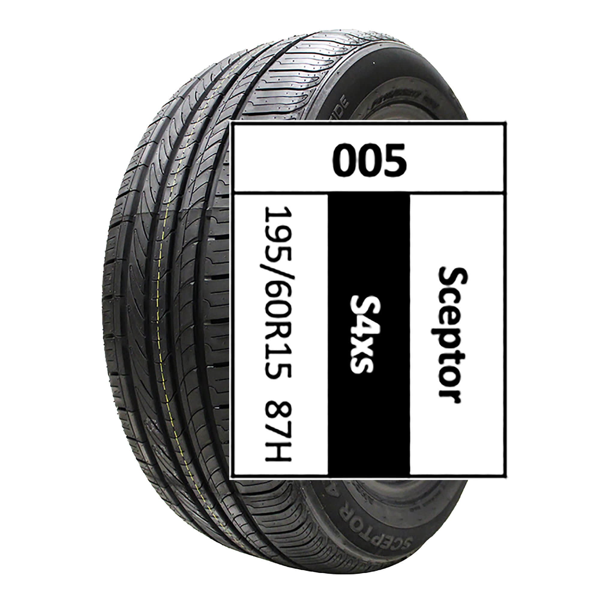 Sceptor 4XS P195/60R15 87H OVERVIEW Designed for sedans, coupes, CUVs, and SUVs, the Sceptor 4XS is an all-season performance tire that offers great value and quality, and has an innovative tread design for commendable year-round traction. The four straight wide grooves of the 4XS ease water dispersion and reduce the chances of aquaplaning for solid wet traction, and the tire’s cutting-edge tread design is optimized for better all-season performance. The advanced siping technology of the 4XS helps in achieving traction on both wet and dry surfaces, and the tire’s solid tread compound along with the tire design help in achieving longer and even wear.