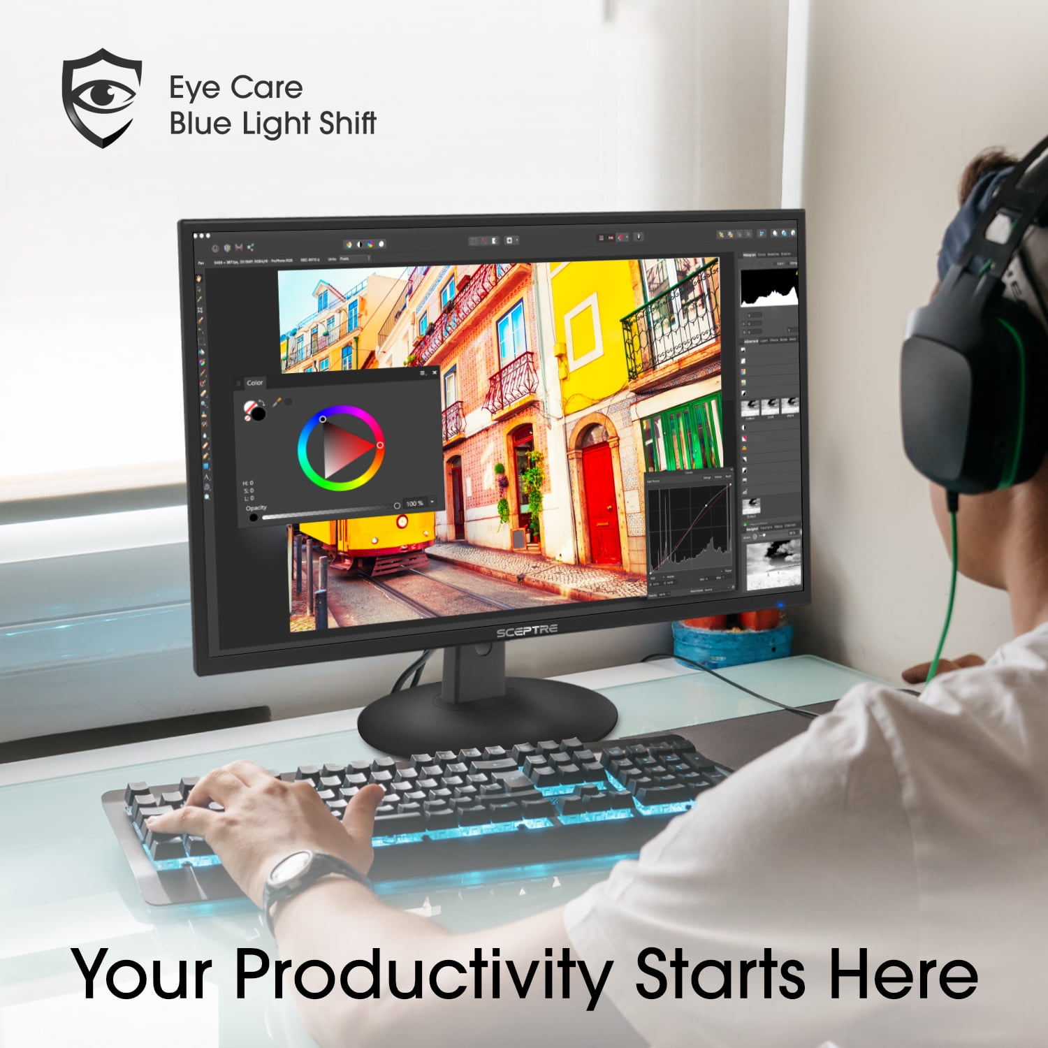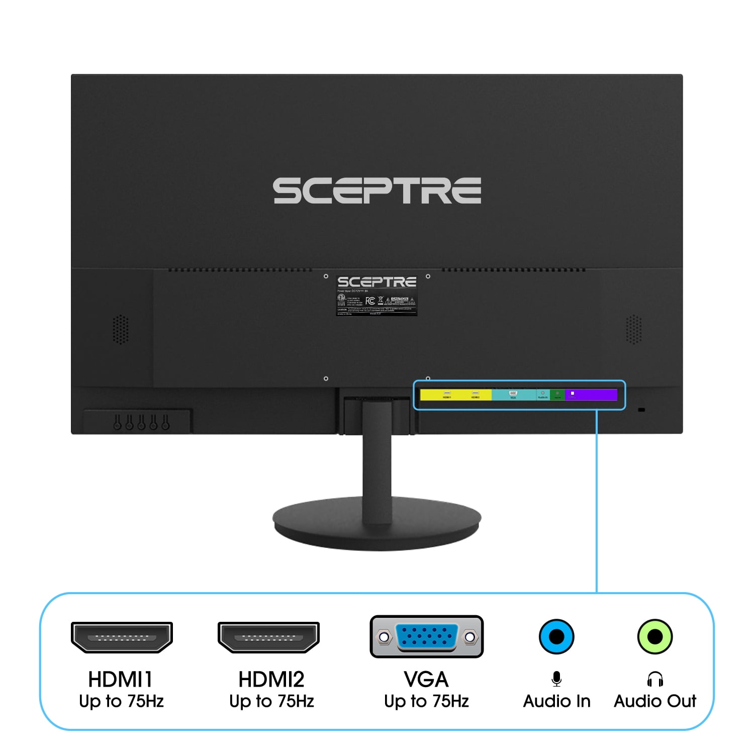With a 27-inch LCD screen, millions of colors, and a 16:9 aspect ratio, the Sceptre E275W-1920 27-Inch LED Monitor puts you right in the middle of the action. VGA and HDMI ports come standard, and the cables for these hookups are included so you can unpack and play. Maybe you still enjoy using retro-style equipment — if that’s the case, the Sceptre widescreen monitor has you covered with both old-school 640 x 480p resolution to today’s HD 1920 x 1080p. Built-in 2-watt speakers provide the audio to go with your video, and they eliminate the need for standalone speakers that take up desk space. Watch streaming content and game in immersive detail with this Sceptre Full HD LED monitor. Founded in the City of Industry, California over 30 years ago, Sceptre Inc. made a promise to create and deliver superior products for remarkably affordable prices, a rare tradition that has continued to this day.