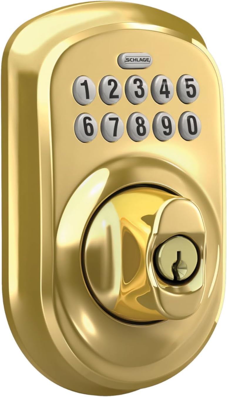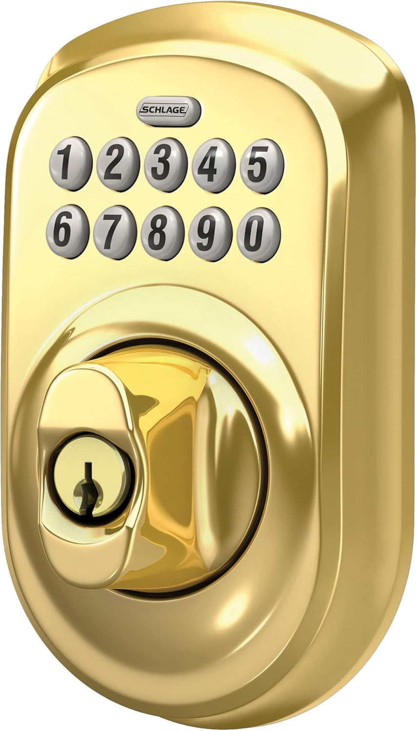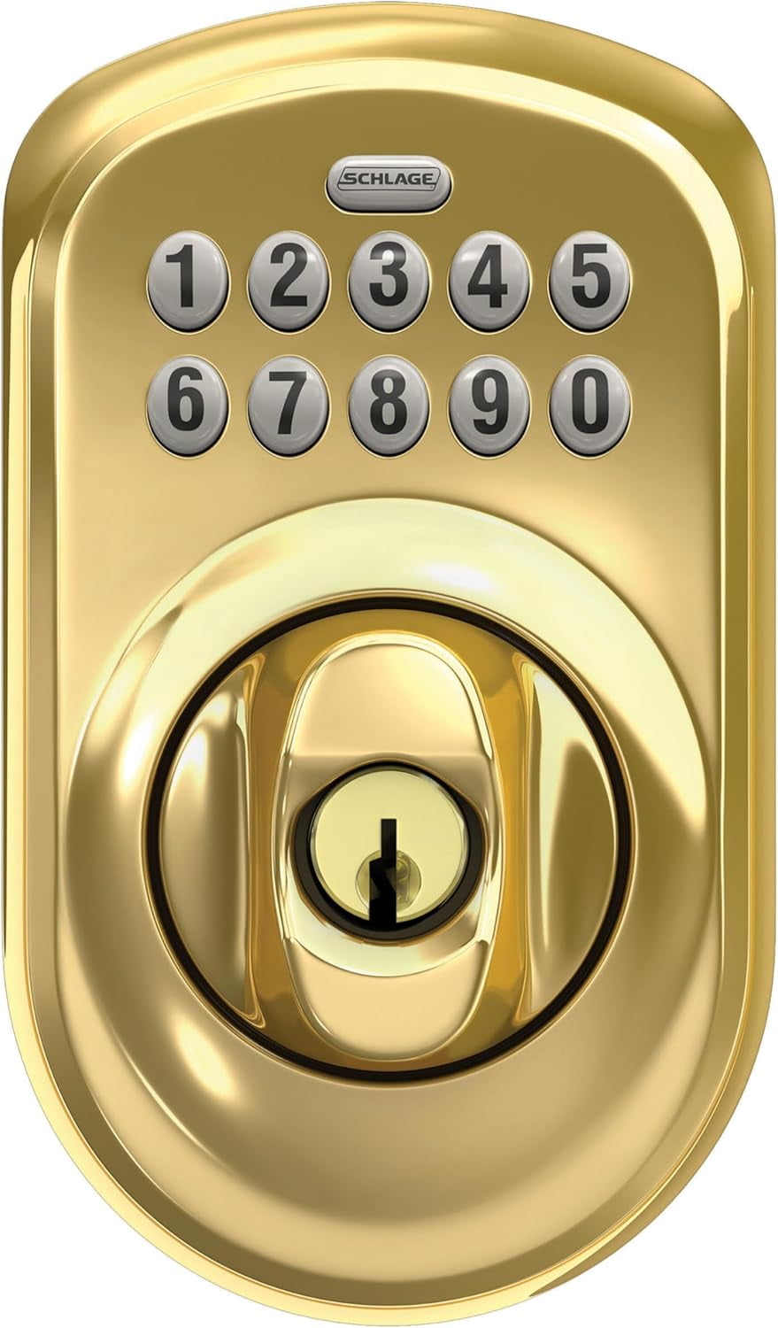 Brand Name: Schlage Finish: Bright Brass Material: Steel Product Type: Electronic Deadbolt Commercial or Residential: Residential Cylinder Type: Single Cylinder Packaging Type: Clamshell ADA Compliant: Door Direction: Grade: Knob Style: Length: Number of Keys Included: Pilot Bit Included: Sub Brand: