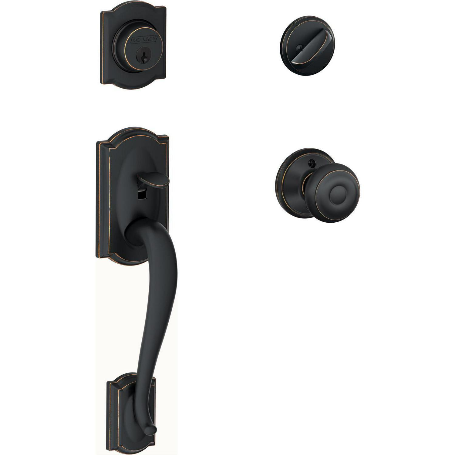 Schlage Camelot Single Cylinder Handleset and Georgian Knob, Aged Bronze (F60 V CAM 716 GEO)