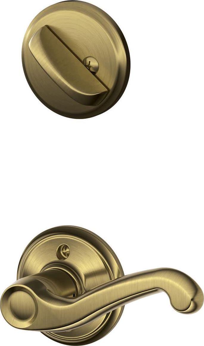 Schlage F59 FLA 609 LH Flair Interior Left-Handed Lever with Deadbolt, Antique Brass (Interior Half Only)