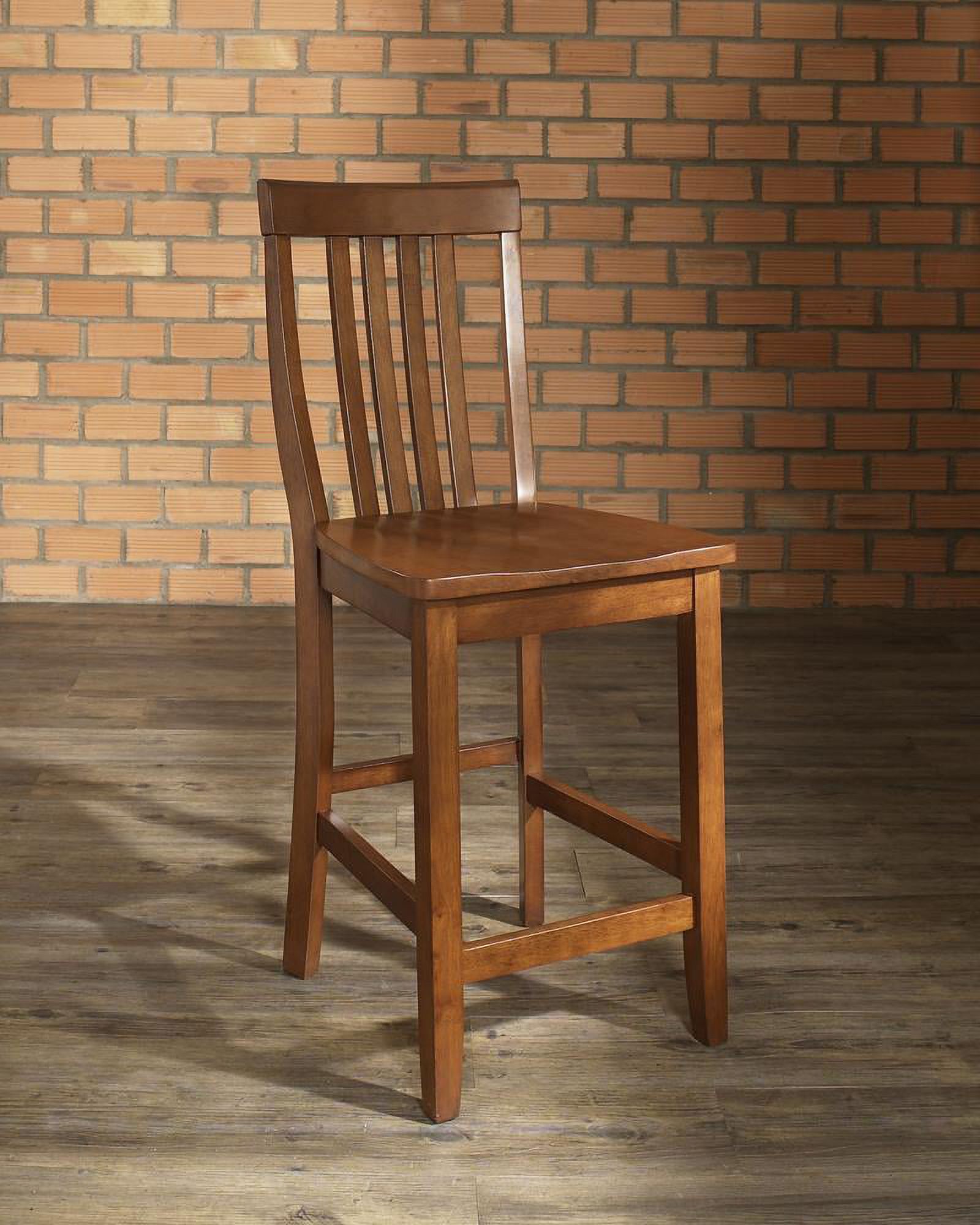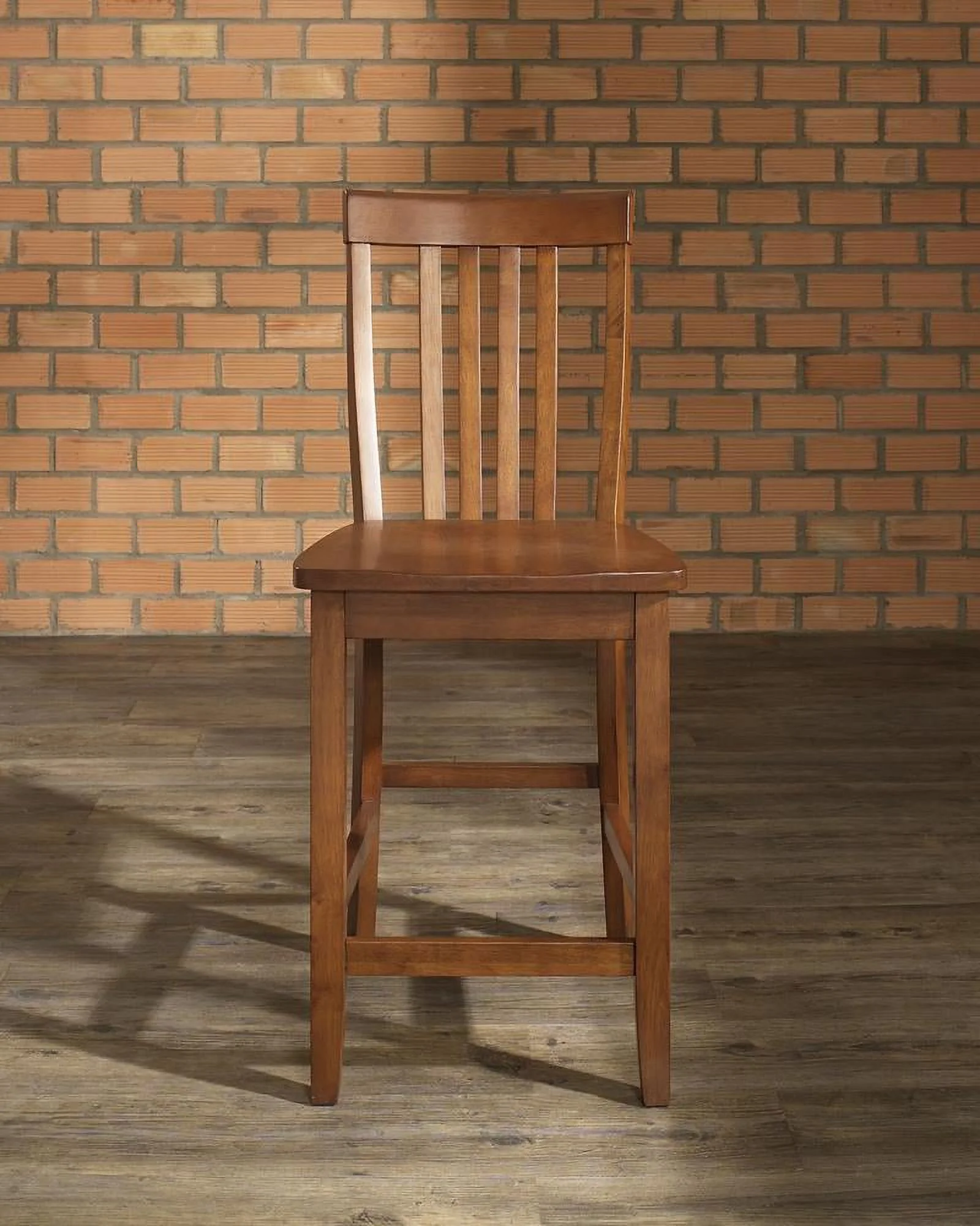The Schoolhouse 2pc Counter Stool Set is crafted for style and long-lasting comfort. With a curved slat back and contoured seat, these stools are an ideal addition to your kitchen or dining area. The stool set?s 24-inch seat height pairs perfectly with a counter height dining table or breakfast bar. Bring classic design to your home with these counter height bar stools.