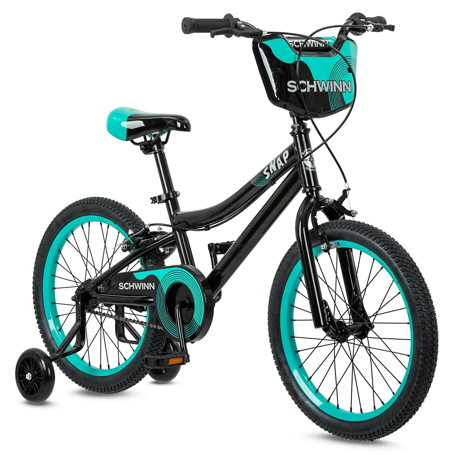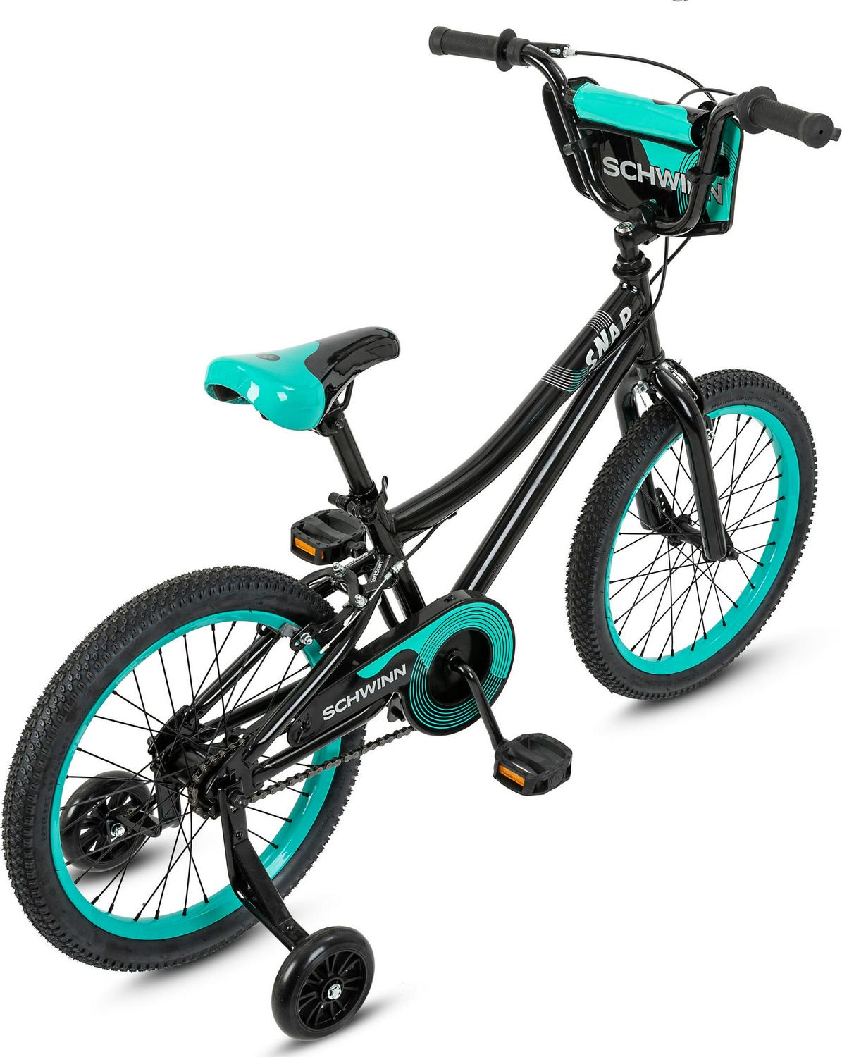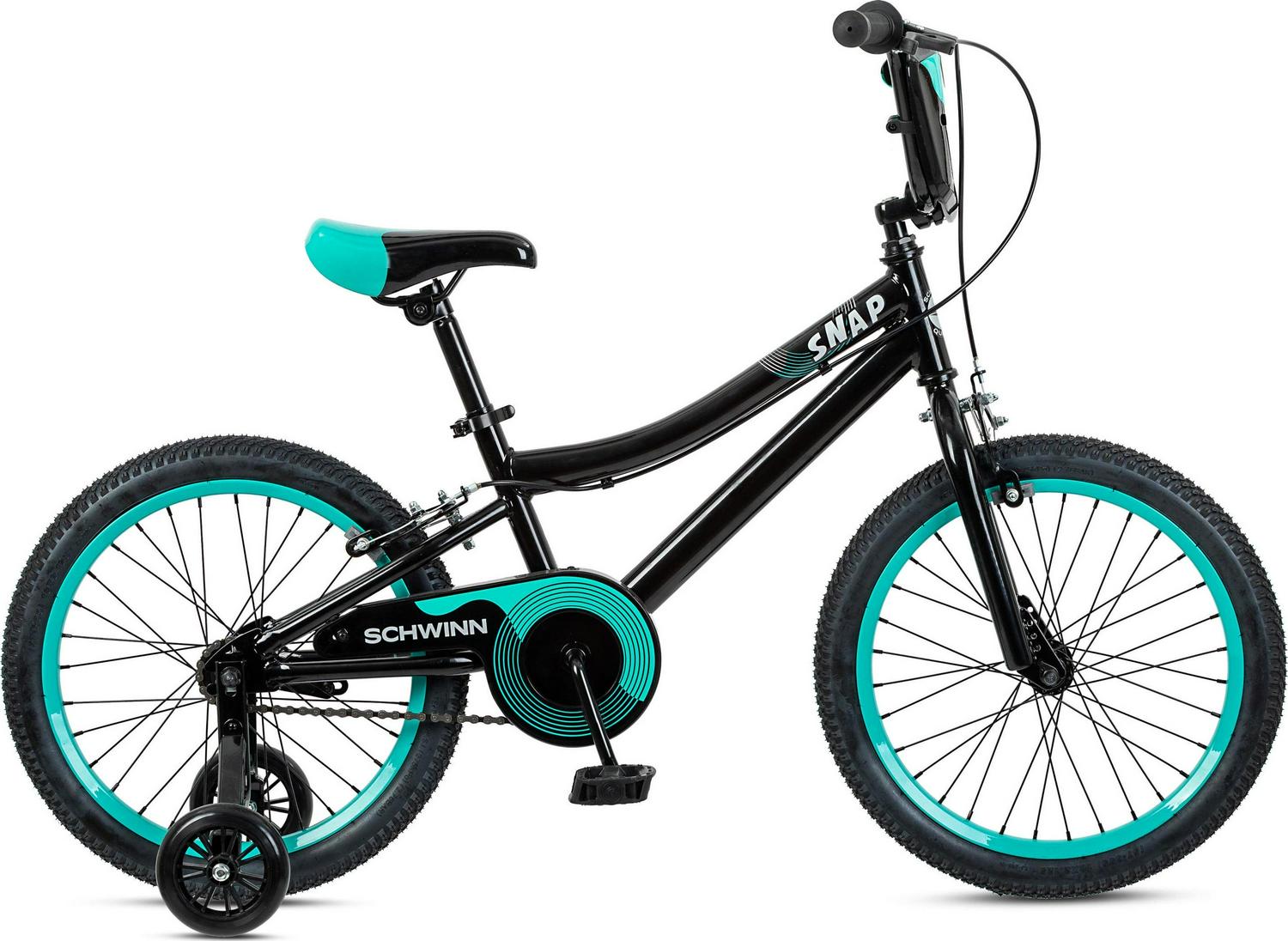 Outdoor fun is a snap the Snap kids bike by Schwinn that is! Perfect for riding around the neighborhood with friends and family, the Snap features SmartStart technology: a major feat of kid-size engineering designed to outsmart physics so kids in motion stay in motion. The Snap also comes with a rear coaster brake for intuitive stopping power and removable training wheels provide extra stability, while tool-free adjustable seat post makes it easy to fine tune the fit. Plus, the handlebar number plate adds an awesome racing style. Make riding a blast with the Snap bike by Schwinn.View more from us on our brand page.