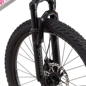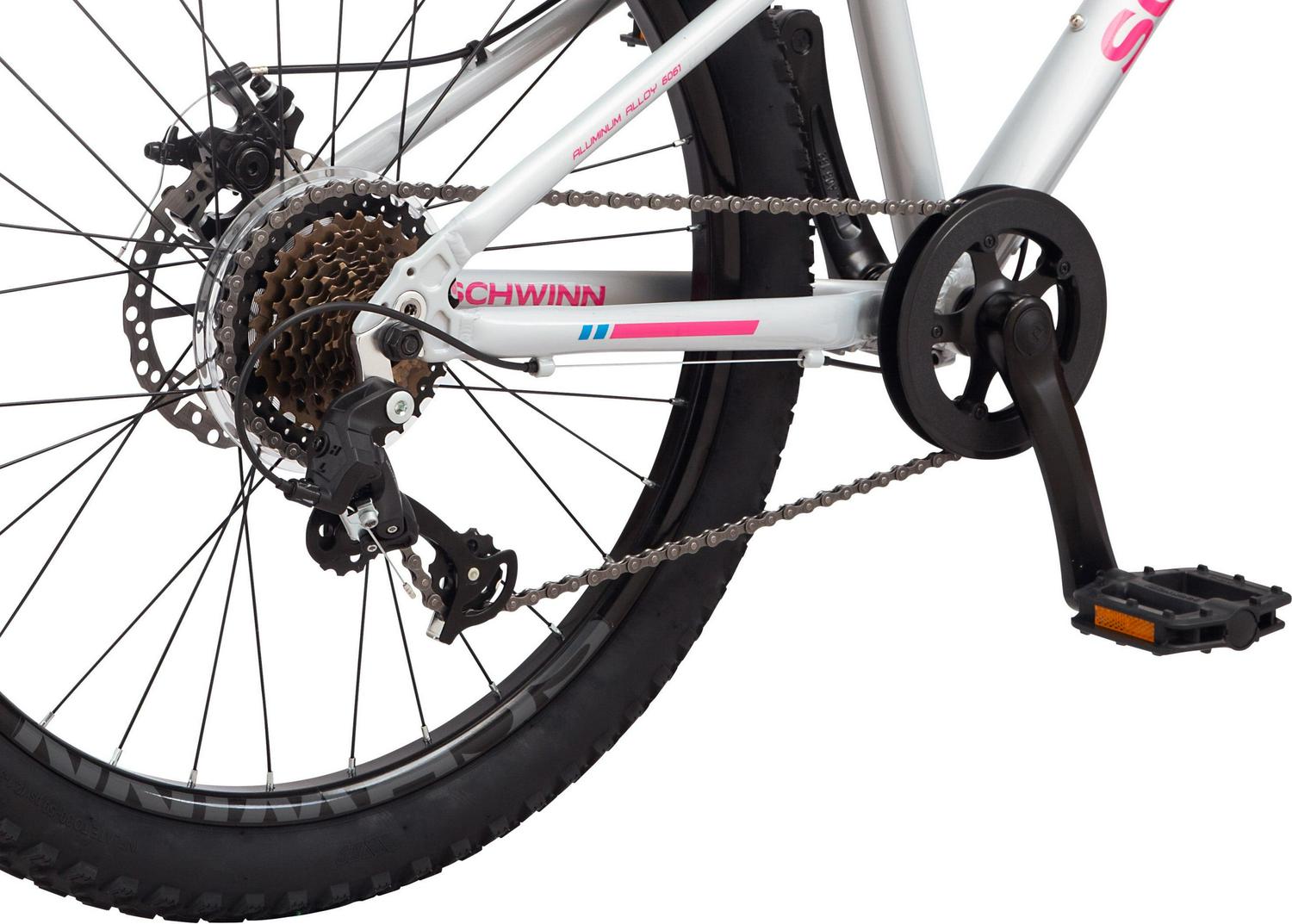 Have a blast on the trails with the Axum Sport mountain kids bike by Schwinn. Great for rough terrain or around the neighborhood, the Axum features a light Schwinn aluminum frame and suspension fork. Eight speeds make it easy to adapt to any terrain with quick, precise gear changes, while the front and rear mechanical disc brakes deliver all-condition stopping power. Plus, the Axum s large 2.4 inch wide mountain tires make it easy to roll over just about anything. Exploring the trails is tons of fun with the Axum Sport by Schwinn.View more from us on our brand page.
