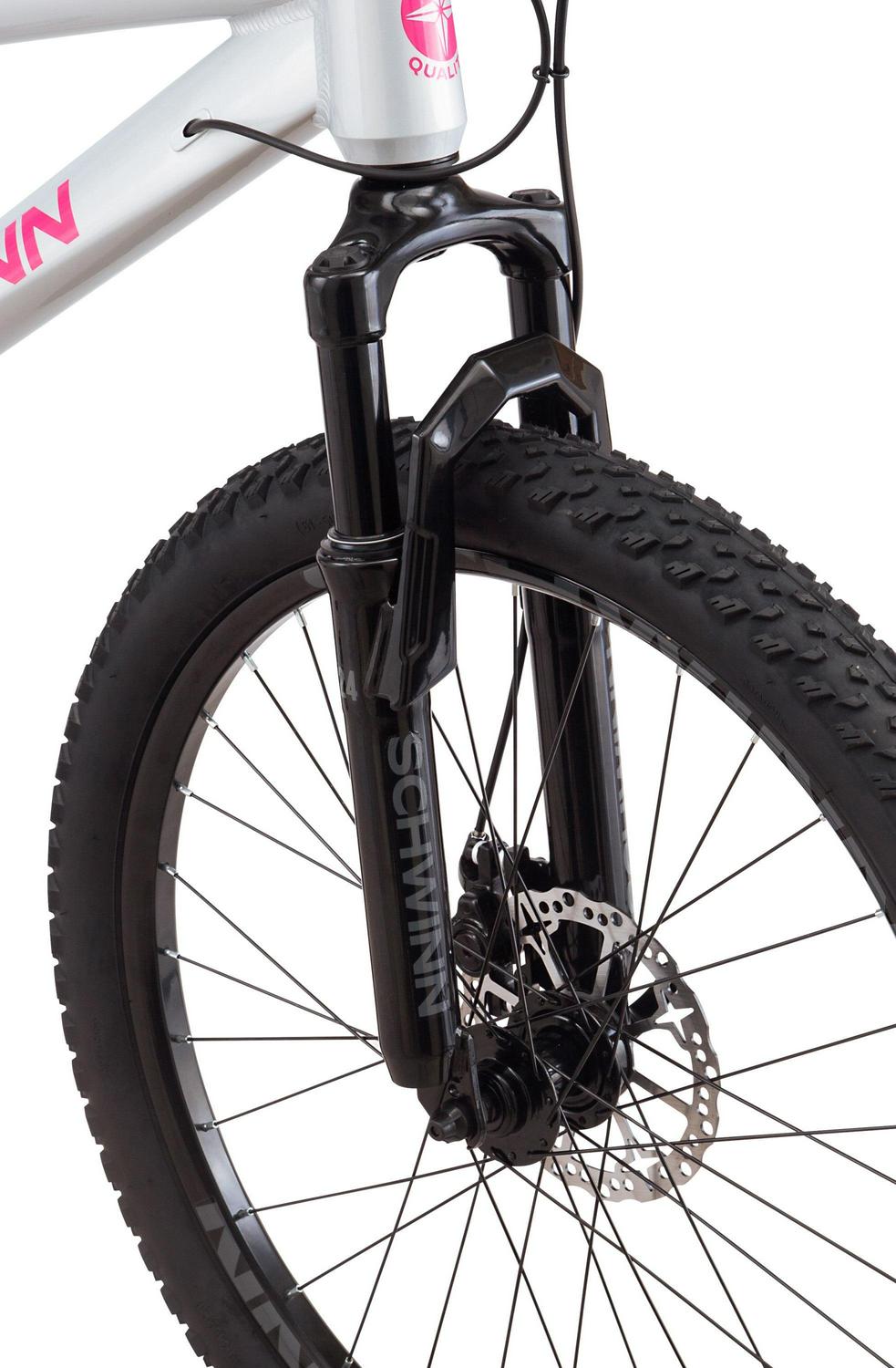 - Suspension fork absorbs bumps on the trail for a more comfortable ride.74