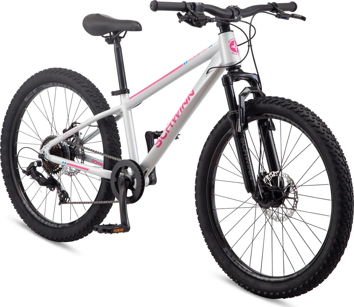 – Kids’ mountain bike featuring a light Schwinn aluminum frame, great for rugged trails and casual rides. 24-inch wheels fit riders 48 to 60 inches tall.