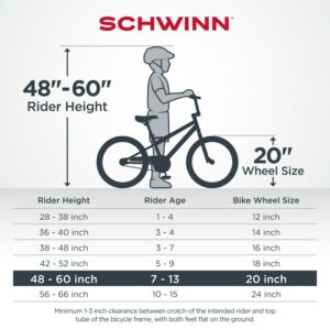 – Kid-specific saddle and relaxed seat tube angle allow proper leg extension for easier pedaling; 20-inch wheels fits riders 48 to 60 inches tall.